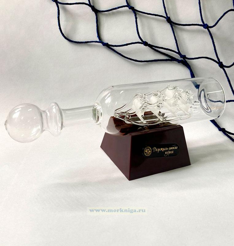 Корабль сувенирный в бутылке "Держись своего курса" – это настоящий деловой подарок мужчине, бизнес-партнеру или просто хорошему человеку. Данный сувенир представляет собой уменьшенную копию парусника со световым эффектом. Такой подарок станет отличным украшением рабочей зоны, а в тот момент, когда вы захотите отвлечься и привести мысли в порядок, посмотрите на кораблик, изучите все детали.