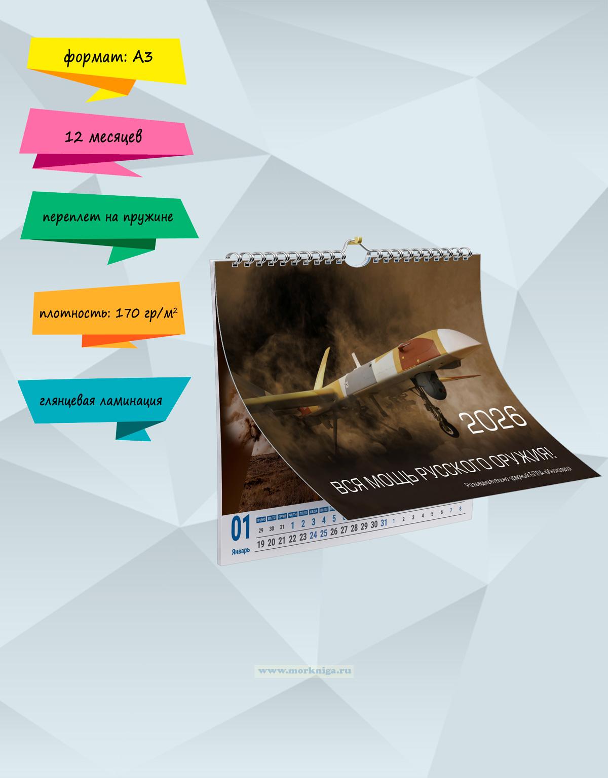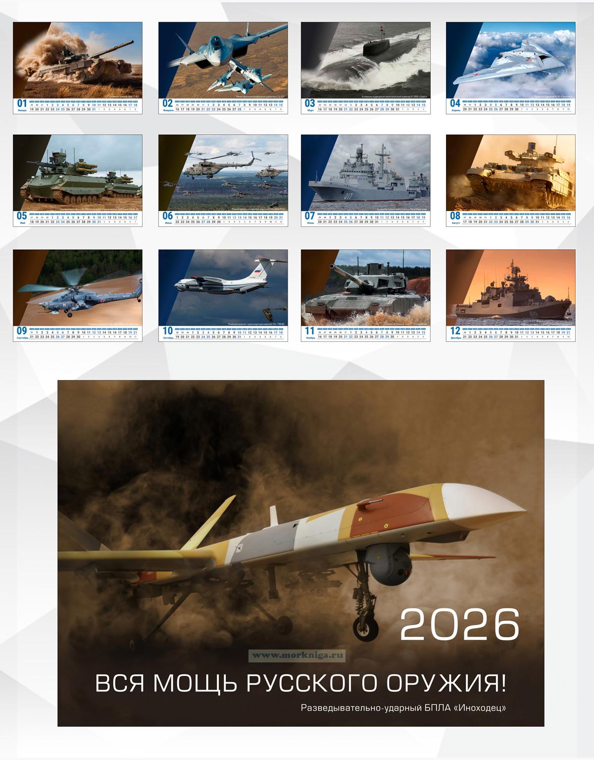 Календарь содержит изображения представителей военной техники и вооружения России: