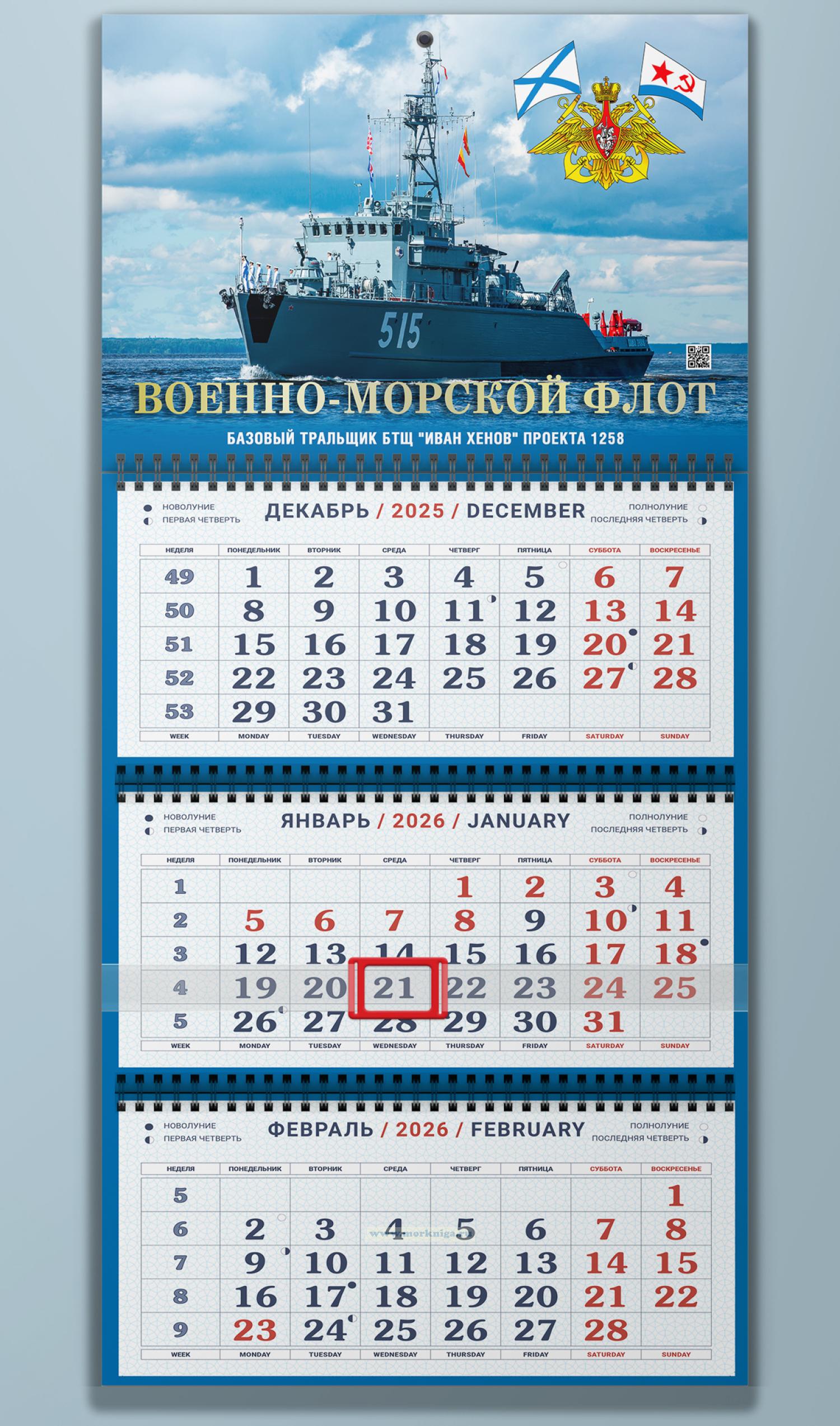 Календарь квартальный "Военно-Морской Флот" на 2026 год (Морской тральщик МТЩ "Владимир Емельянов" проекта 12700 "Александрит") (730 руб.)