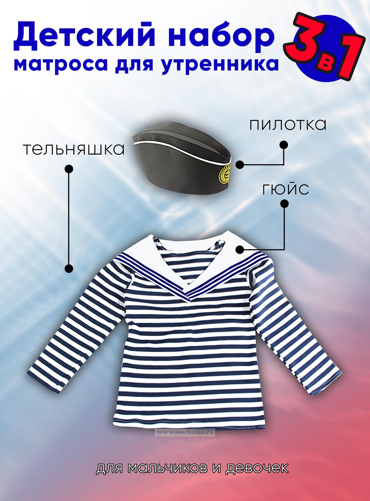 Детский набор матроса для утренника (тельняшка: 30 размер, пилотка: 54 размер (на рост 116-122, до 7 лет) и гюйс белый) (819 руб.)