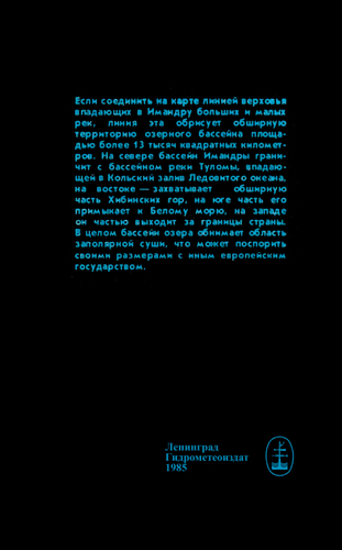 Озеро Имандра - крупнейший водоем Кольского полуострова. Со времен средневековья через него пролегал путь русских людей на север, здесь прошли маршруты первых исследователей края - М. А. Кастрена, А. Ф. Миддендорфа и др. В наши дни облик озера изменился - в прилегающей к нему части Кольского полуострова выросли крупные горнодобывающие и промышленные предприятия. О происхождении озера, его геологической истории, флоре, фауне, о том, как развитие народного хозяйства сочетается с охраной водоема, рассказывает автор в своей книге. Для широкого круга читателей