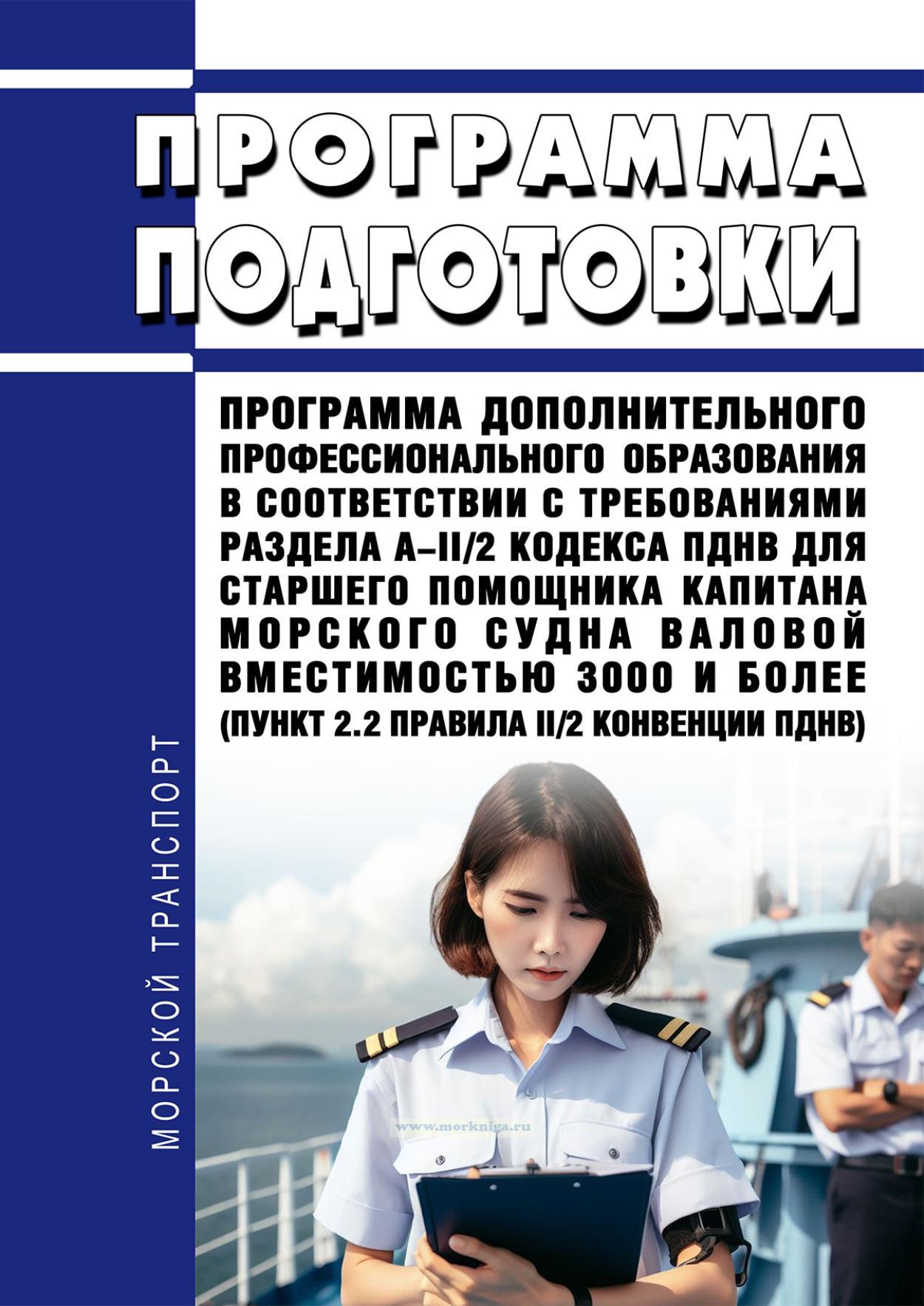 Программа подготовки "Программа дополнительного профессионального образования в соответствии с требованиями раздела А-II/2 Кодекса ПДНВ для старшего помощника капитана морского судна валовой вместимостью 3000 и более (пункт 2.2 Правила II/2 Конвенции ПДНВ)" согласована приказом Федерального агентства морского и речного транспорта от 2 марта 2022 г. № 27.