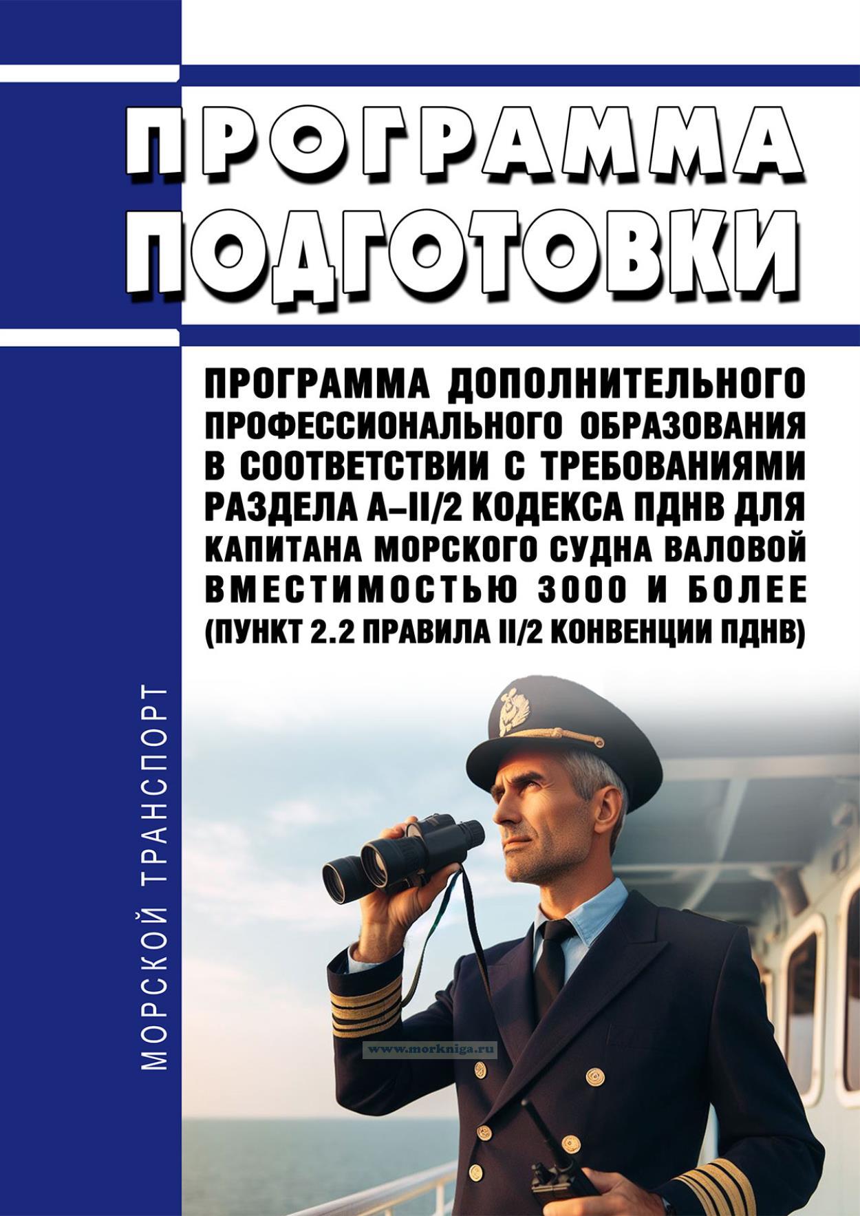Программа подготовки "Программа дополнительного профессионального образования в соответствии с требованиями раздела А-II/2 Кодекса ПДНВ для капитана морского судна валовой вместимостью 3000 и более (пункт 2.2 Правила II/2 Конвенции ПДНВ)" согласована приказом Федерального агентства морского и речного транспорта от 2 марта 2022 г. № 27.
