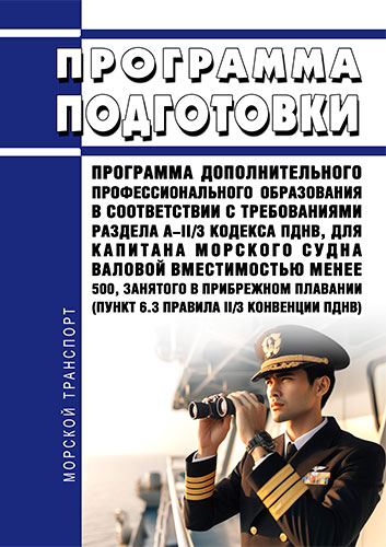 Программа подготовки "Программа дополнительного профессионального образования в соответствии с требованиями раздела А-II/3 Кодекса ПДНВ , для капитана морского судна валовой вместимостью менее 500, занятого в прибрежном плавании (пункт 6.3 Правила II/3 Конвенции ПДНВ)" согласована приказом Федерального агентства морского и речного транспорта от 2 марта 2022 г. № 27.