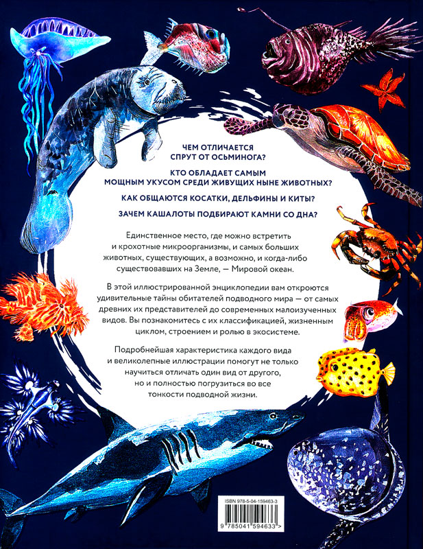 Единственное место на Земле, где можно встретить и крохотные микроорганизмы, и самых больших животных, существующих, а возможно, и когда-либо существовавших на Земле, - Мировой океан. В этой иллюстрированной энциклопедии вам откроются удивительные тайны обитателей подводного мира от самых древних их представителей до современных малоизученных видов. Вы познакомитесь с их классификацией, жизненным циклом, строением и ролью в экосистеме. Подробнейшая характеристика каждого вида и великолепные иллюстрации помогут не только научиться отличать один вид от другого, но и полностью погрузиться во все тонкости подводной жизни.