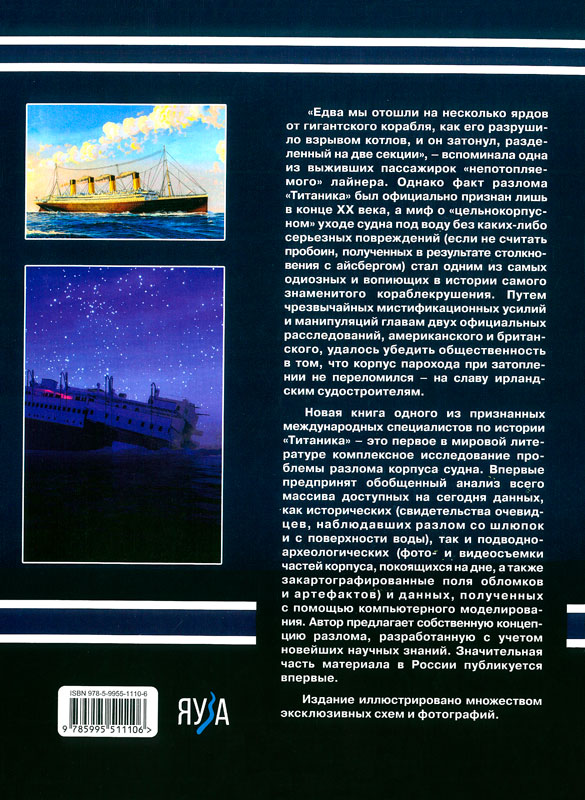 Новая книга признанного мирового специалиста по «Титанику» - это первое комплексное исследование главной тайны величайшей морской катастрофы. Впервые предпринят обобщенный анализ всего массива доступных на сегодня данных, как исторических, так и подводно-археологических и данных, полученных с помощью компьютерного моделирования.