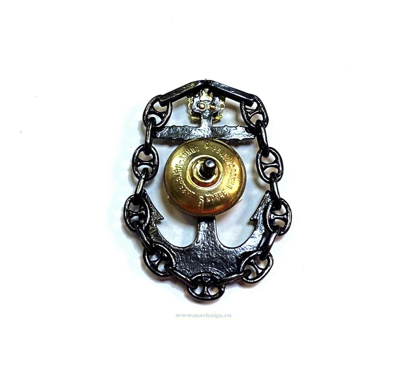 Нагрудный знак "Капитан дальнего плавания" представляет собой металлический выпуклый якорь в овальном венчике из якорь-цепи с распорками, венчается гербом РФ;
