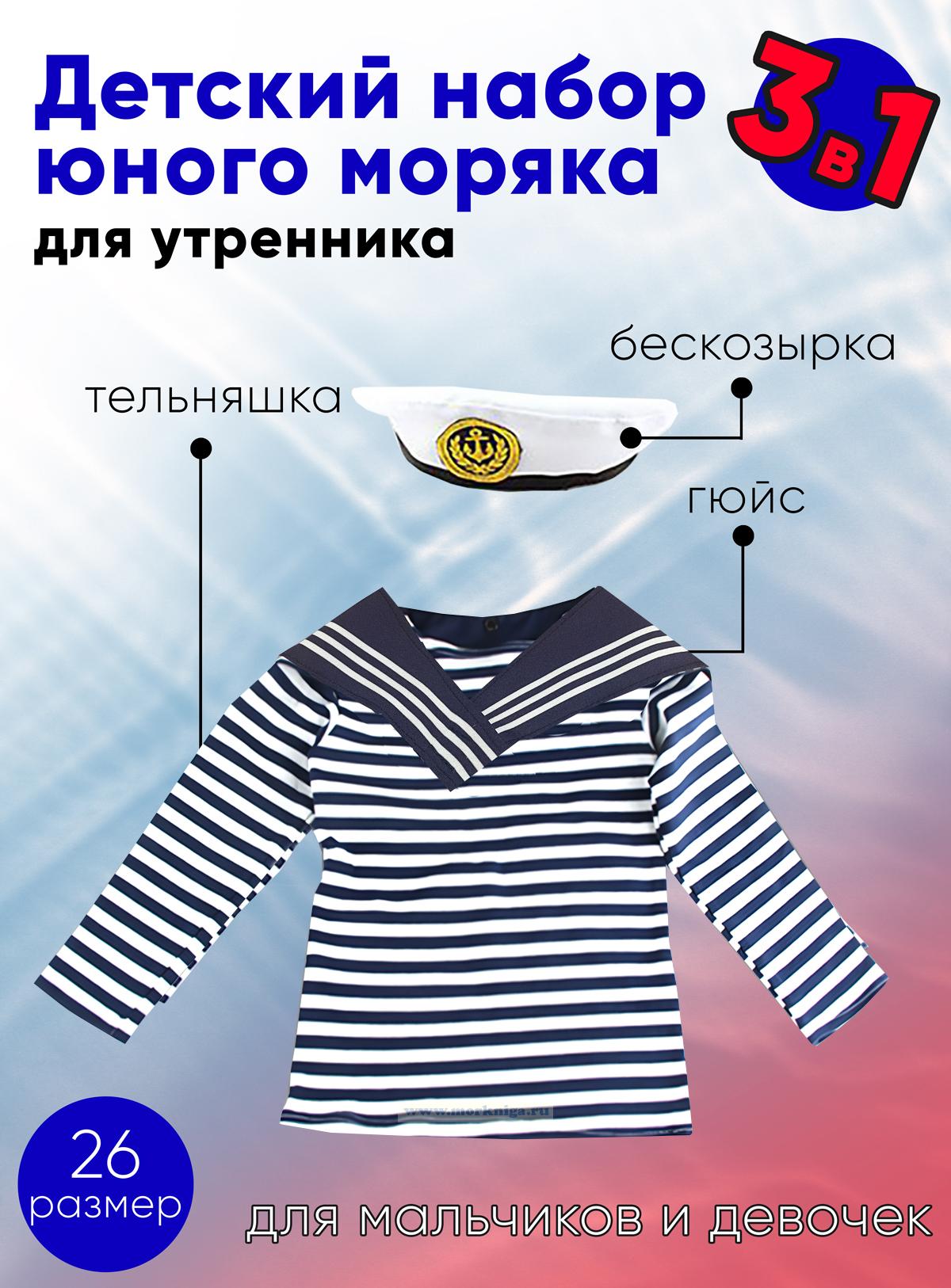 Набор юного моряка для утренника (бескозырка, белый гюйс и тельняшка; размер 28) (779 руб.)