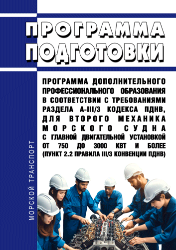 Программа подготовки "Программа дополнительного профессионального образования в соответствии с требованиями раздела А-III/3 Кодекса ПДНВ, для второго механика морского судна с главной двигательной установкой от 750 до 3000 кВт и более (пункт 2.2 Правила III/3 Конвенции ПДНВ)" согласована приказом Федерального агентства морского и речного транспорта от 2 марта 2022 г. № 27.