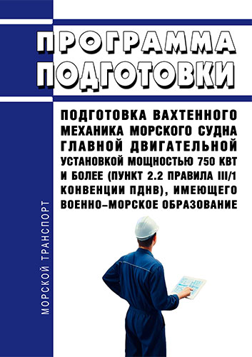 Программа подготовки "Подготовка вахтенного механика морского судна главной двигательной установкой мощностью 750 кВт и более (пункт 2.2 Правила III/1 Конвенции ПДНВ), имеющего военно-морское образование" согласована приказом Федерального агентства морского и речного транспорта от 2 марта 2022 г. № 27.