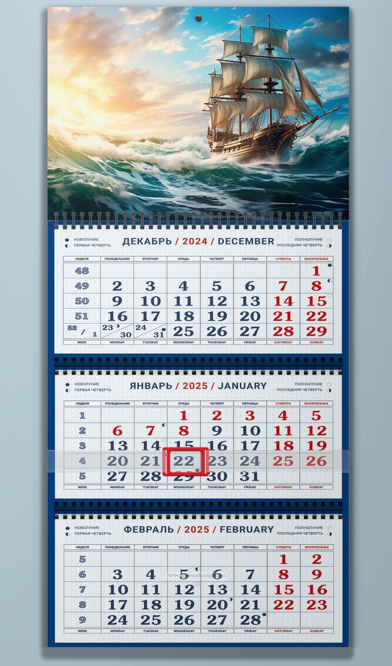 Календарь квартальный "Парусное судно. Повелитель морей" на 2026 год (730 руб.)