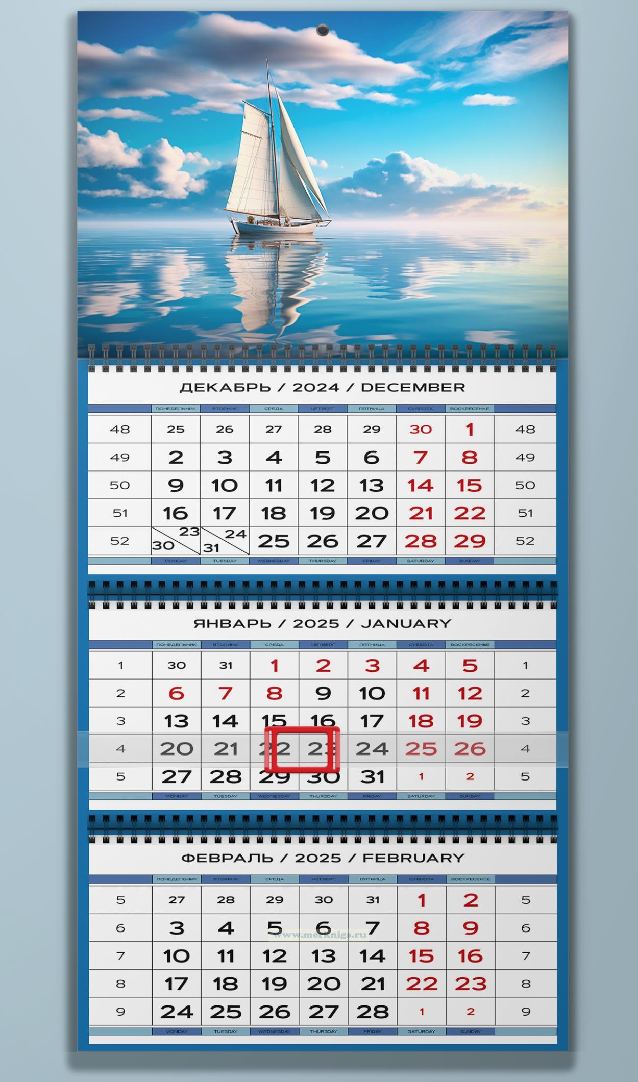 Календарь квартальный "Парусник в лучах уходящего солнца" на 2026 год (730 руб.)