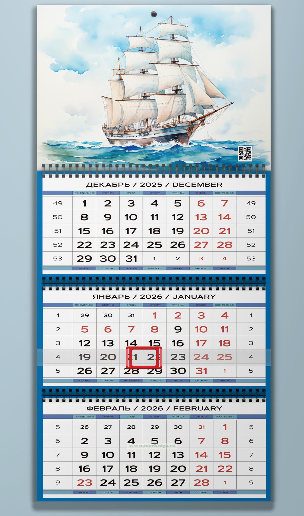 Календарь квартальный "Парусное судно. Повелитель морей" на 2026 год (730 руб.)