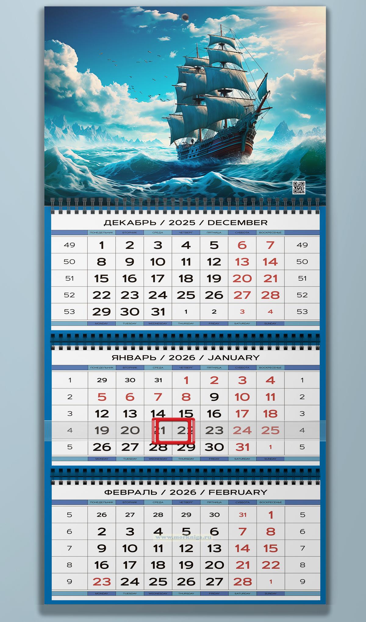 Календарь квартальный "Парусное судно. Повелитель морей" на 2026 год (730 руб.)
