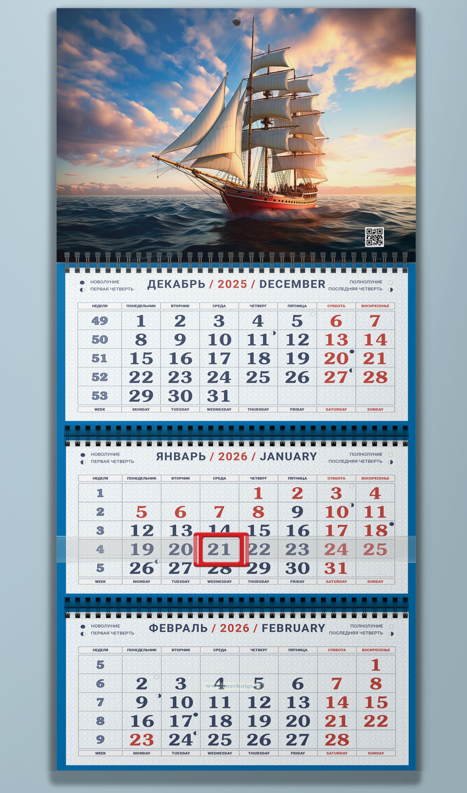 Календарь квартальный "Парусное судно. Повелитель морей" на 2026 год (730 руб.)