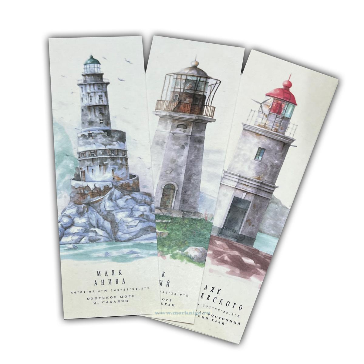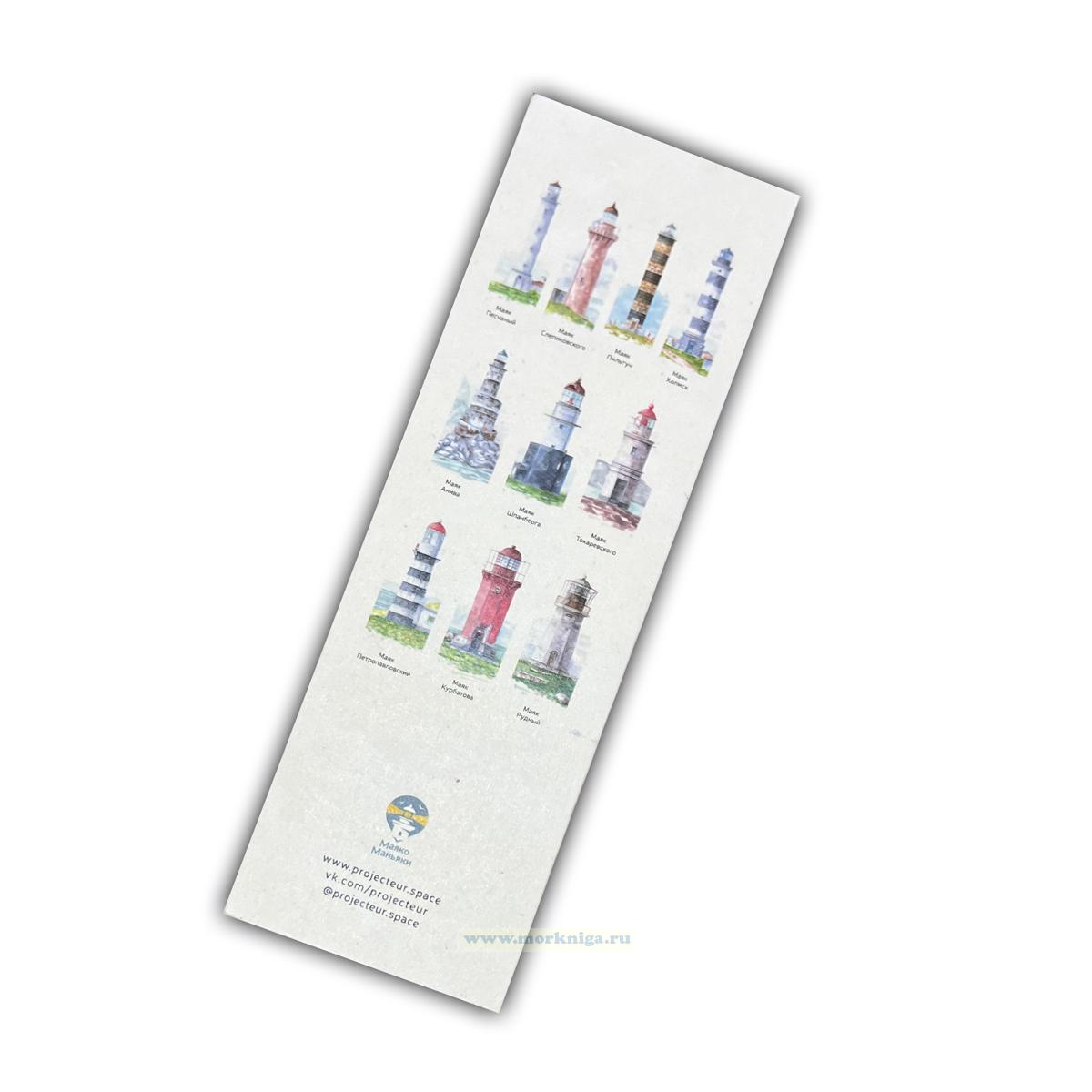 Книжные закладки с маяками. На обратной стороне место под заметки. Отпечатаны на приятном, шероховатом и плотном дизайнерском картоне.