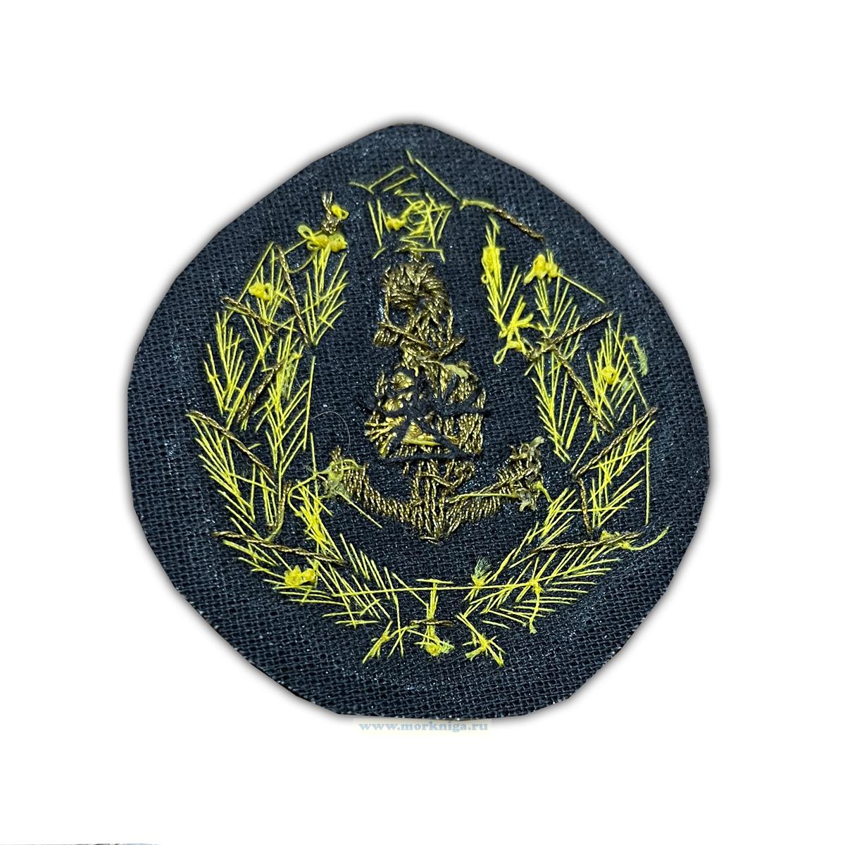 На кокарде Старшего Комсостава Речфлота СССР изображен якорь со звездой и глобусом с серпом и молотом, окруженный лавровыми ветвями, вышитыми нитями золотого цвета.