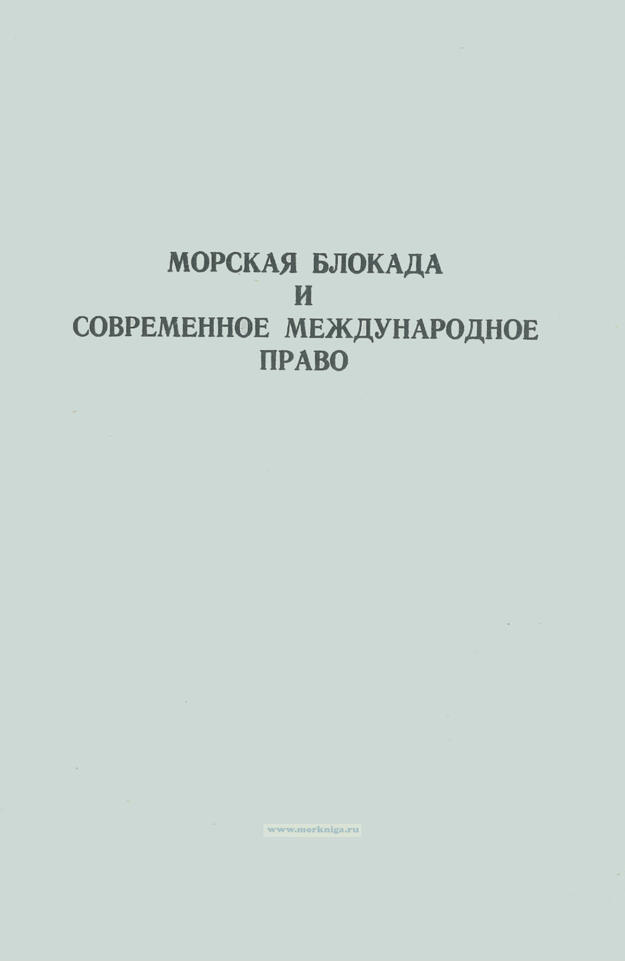 Первое в советской литературе комплексное исследование военно-морских и политико-юридических аспектов морской блокады. Критический анализ реакционных концепций империализма” относящихся к морской блокаде. Показывается преступный характер „блокадных операций империалистических государств против Советского государства (1918-1922 гг.). Разоблачается противоправный характер установления морской блокады США и другими империалистическими державами во время агрессии против КНДР, Кубы, Вьетнама, Египта и других стран. Предназначена для офицеров ВМФ в качестве учебного пособия.