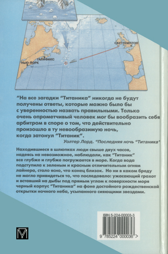 В книге Уолтера Лорда, выдержавшей в США свыше 10 изданий, рассказывается о лайнере “Титаник”, его короткой жизни и полной драматизма гибели. Написанная на основе богатого фактического материала, эта книга воссоздает события трагической апрельской ночи, унесшей жизни более полутора тысяч человек. Уже после написания книги У. Лорда наконец был найден затонувший “Титаник”, что повлекло за собой публикацию множества сенсационных материалов, и появилась возможность дополнить книгу У. Лорда новыми страницами. В представленной части “Титаник”. Взгляд через десятилетия, написанной инженером-кораблестроителем и историографом “Титаника” С. И. Белкиным, приводятся новые факты, полученные после обнаружения лайнера, объясняющие причины его гибели, рассказывается о судьбах выживших после катастрофы.