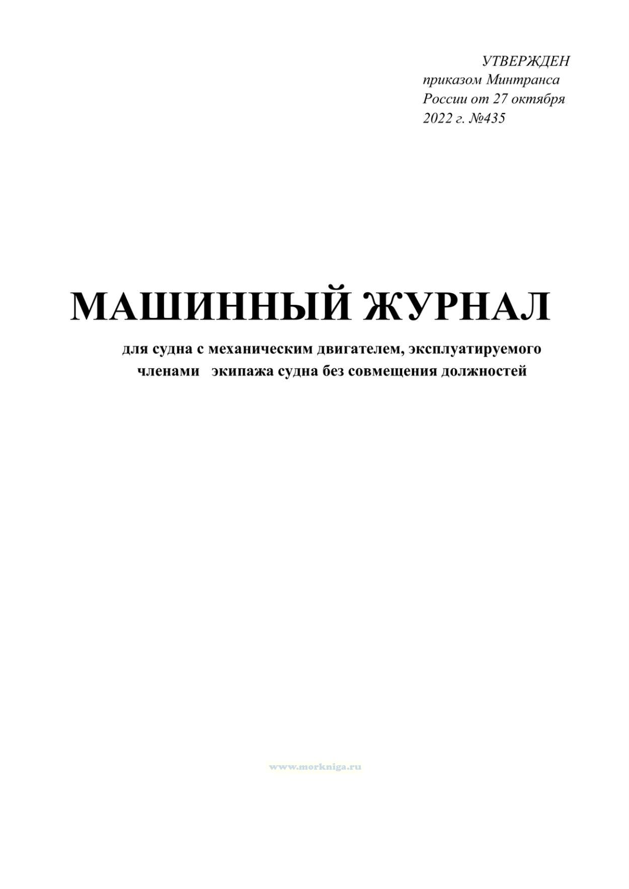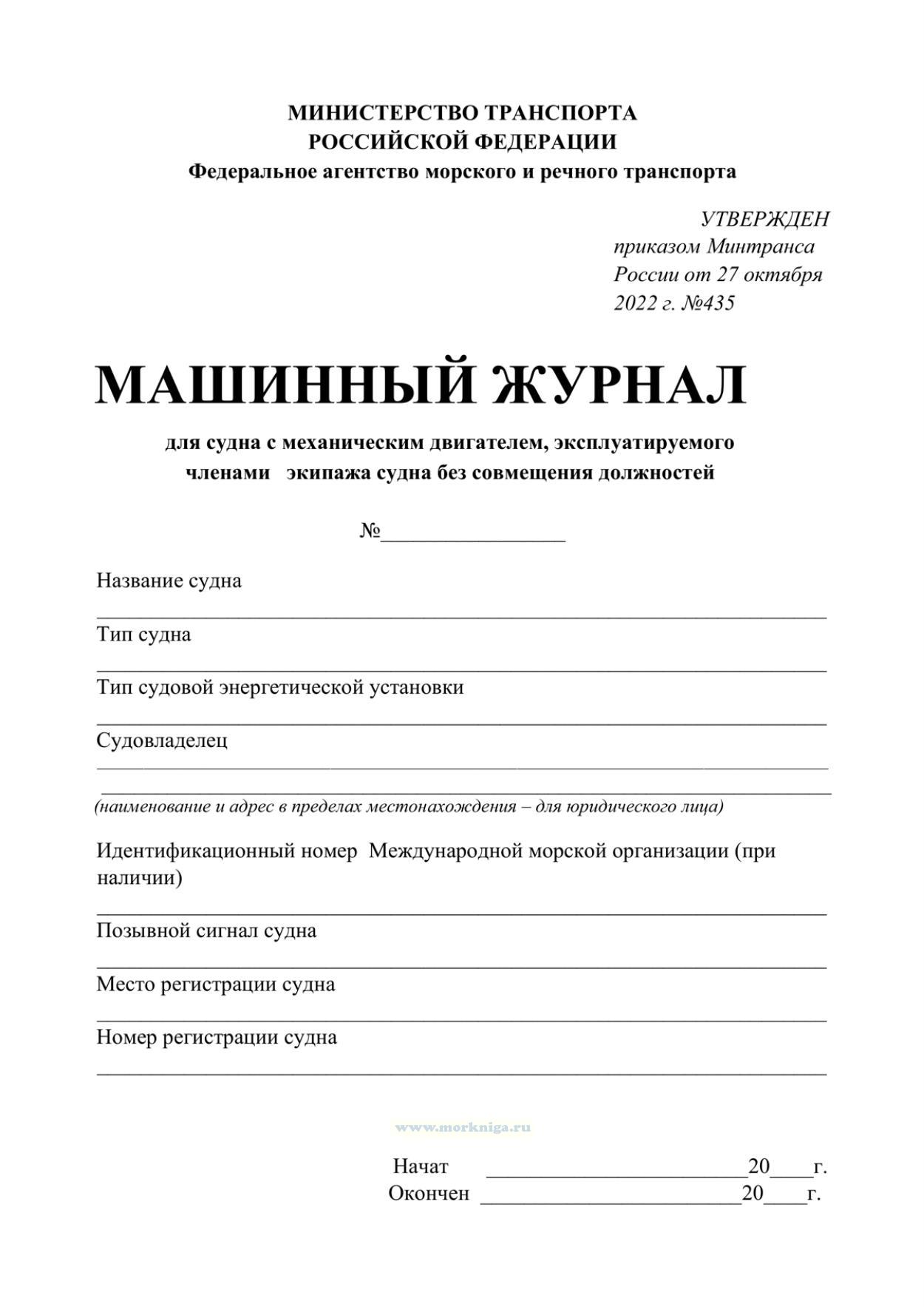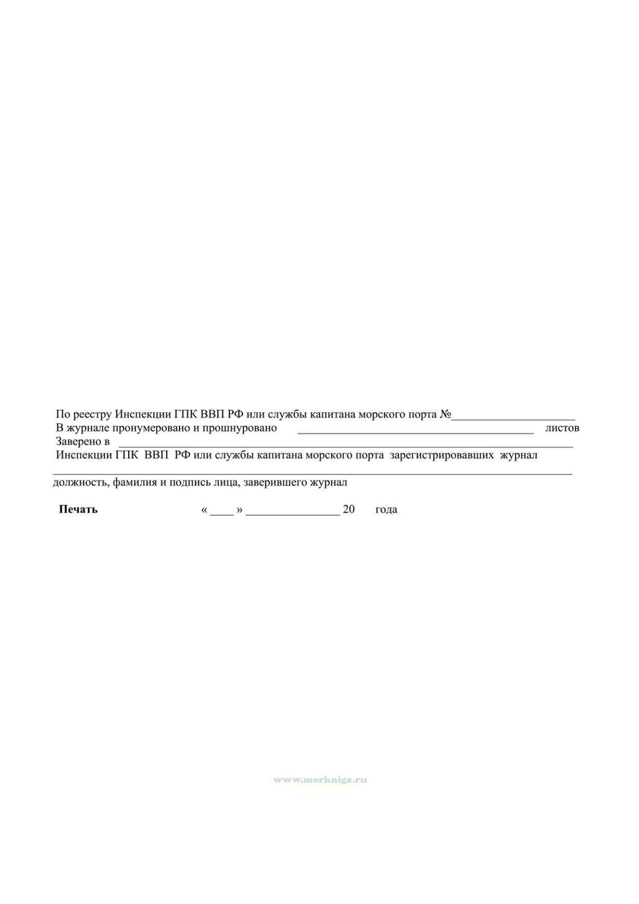 Машинный журнал должен вестись на каждом судне, имеющем право плавания под Государственным флагом Российской Федерации, в течение всего периода его эксплуатации.