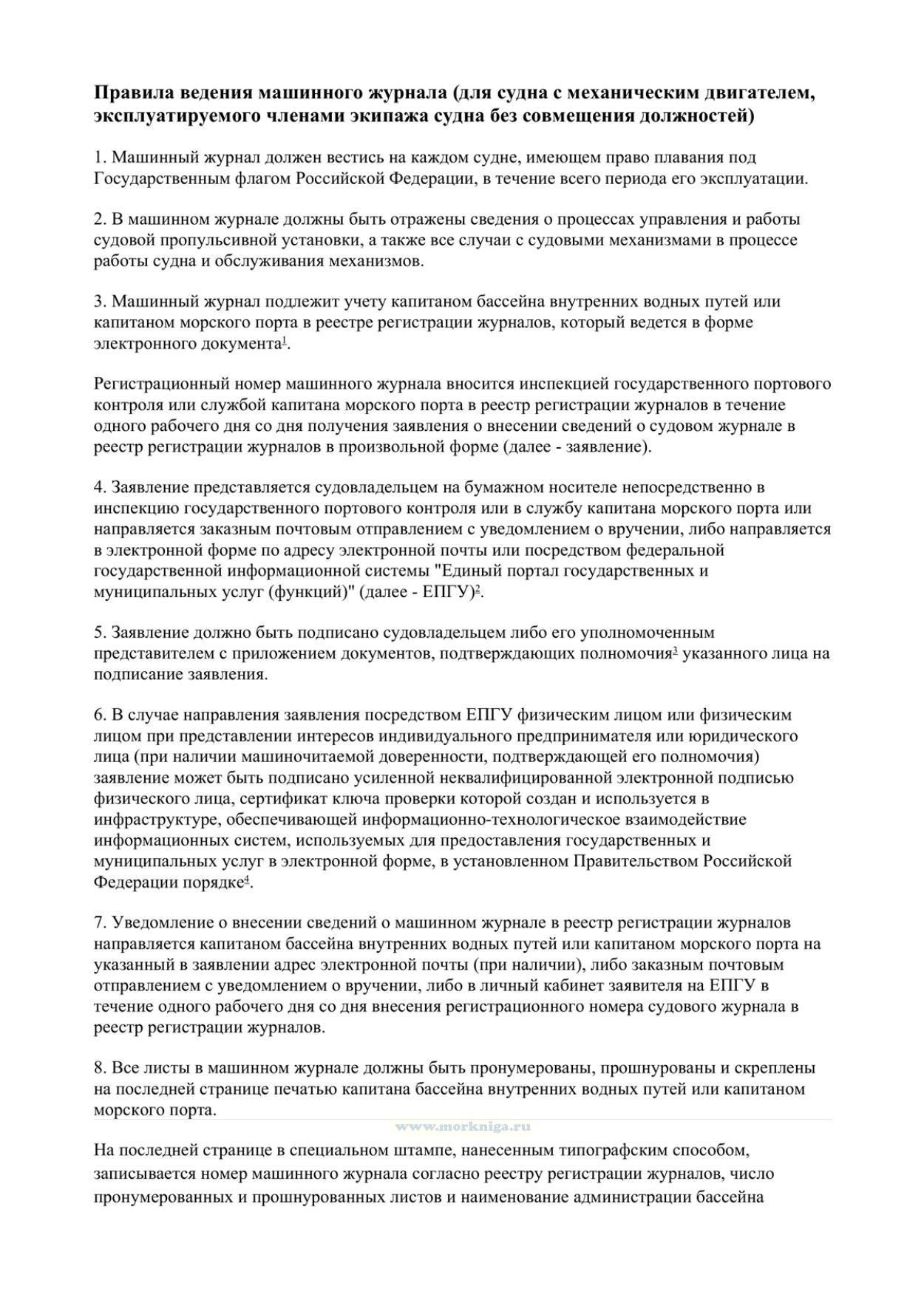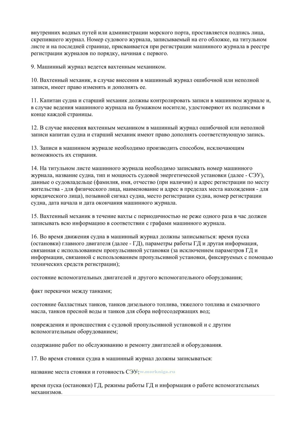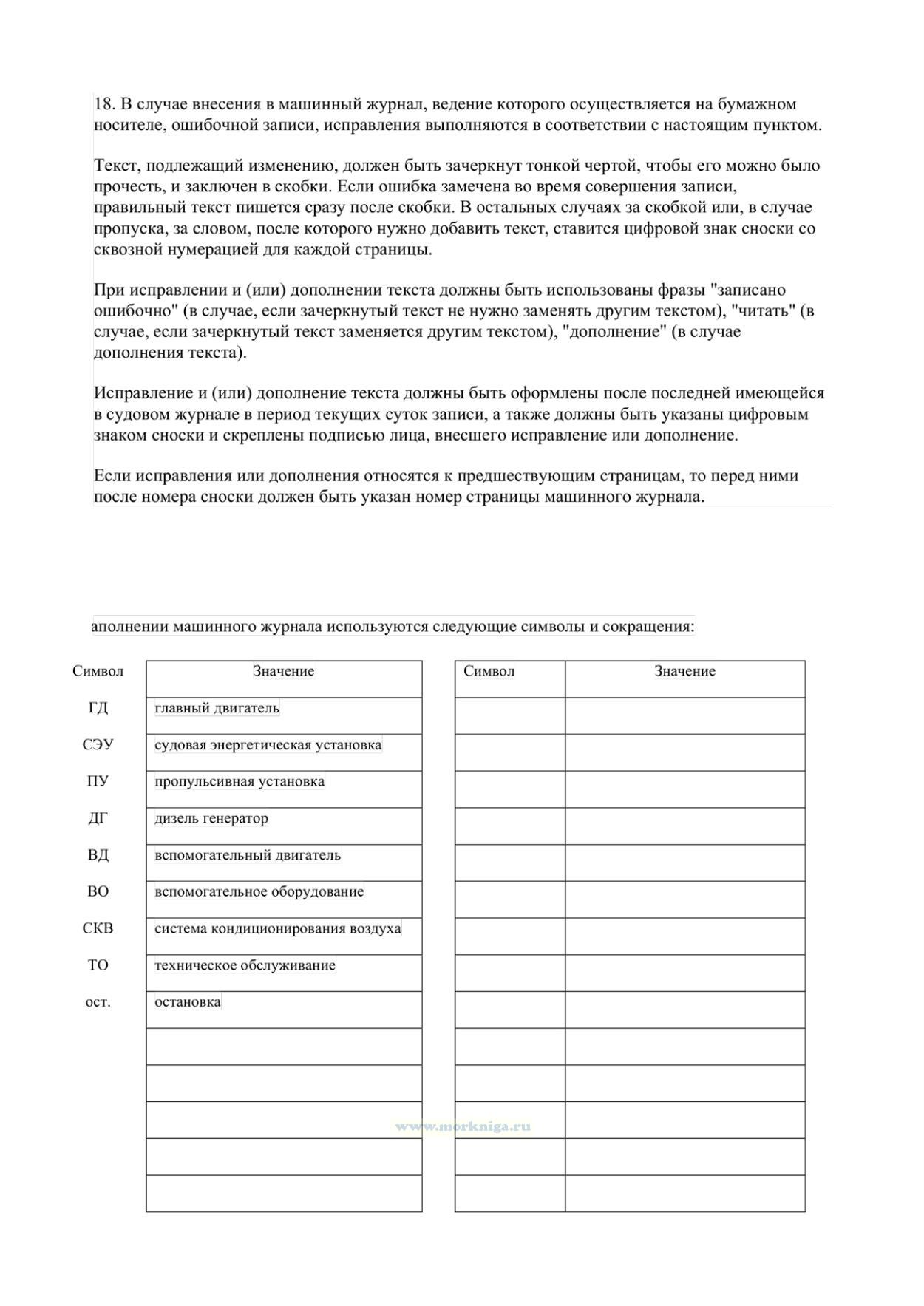 Правила ведения машинного журнала (для судна с механическим двигателем, эксплуатируемого членами экипажа судна без совмещения должностей)