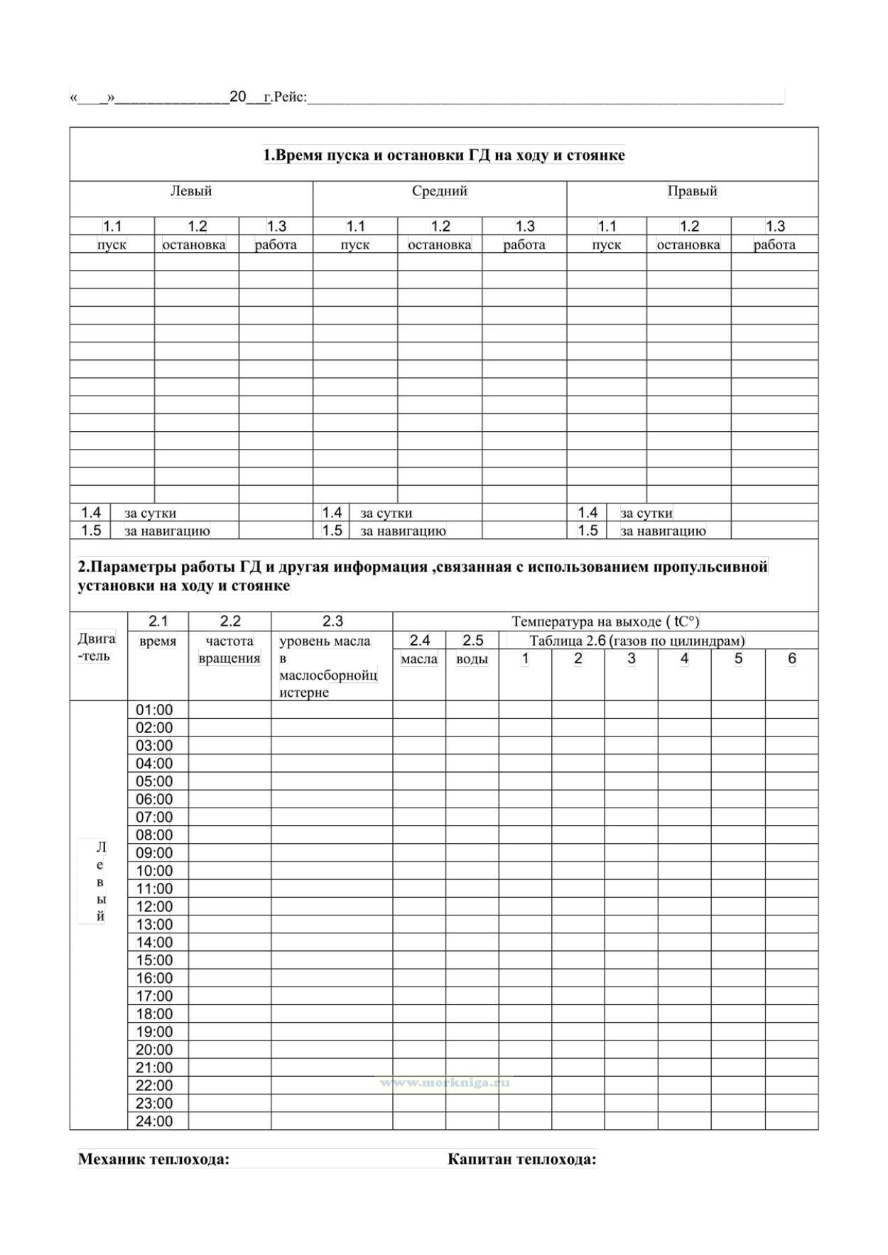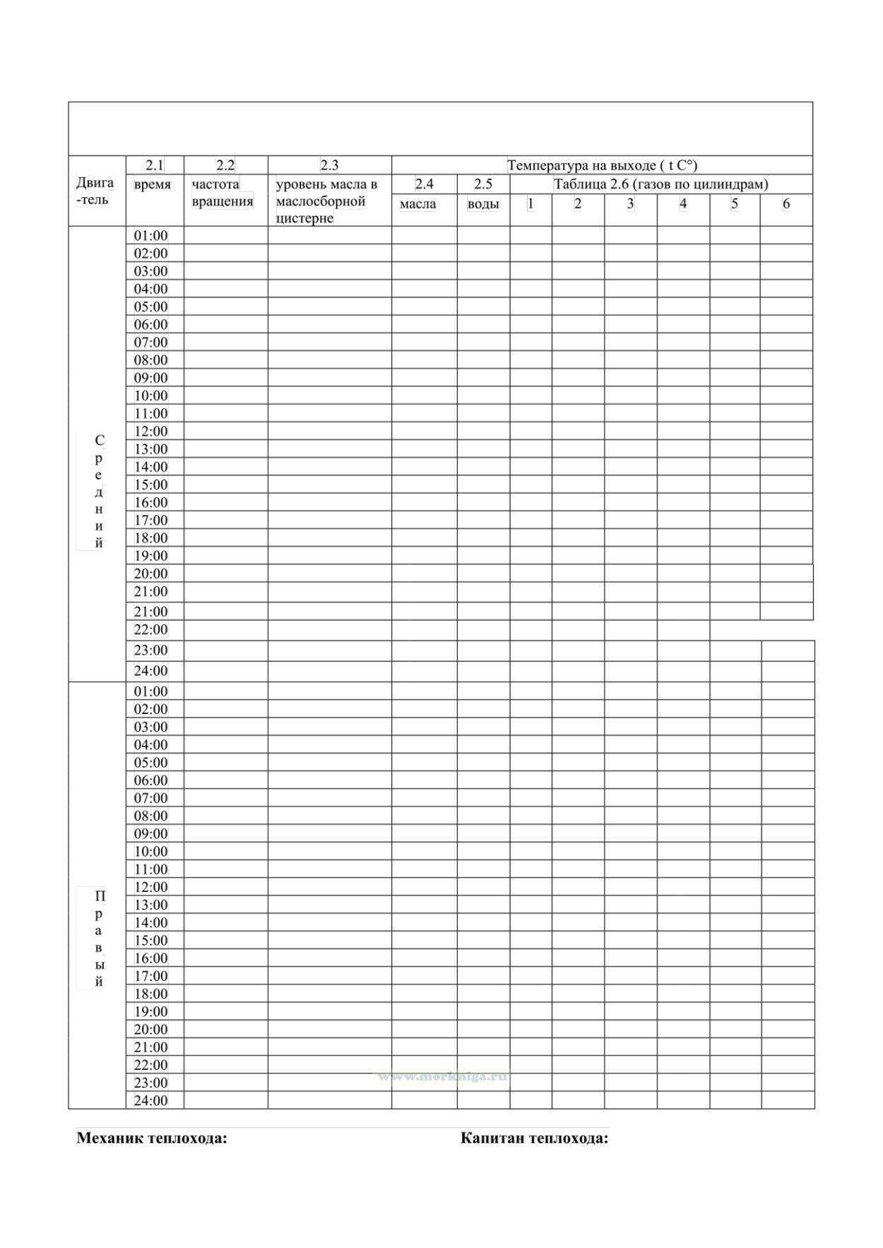 Форма Машинного журнала для судна с механическим двигателем, эксплуатируемого членами экипажа судна без совмещения должностей соответствует Правилам ведения судового журнала и машинного журнала (для судна с механическим двигателем, эксплуатируемого членами экипажа судна без совмещения должностей) на судах внутреннего водного транспорта.