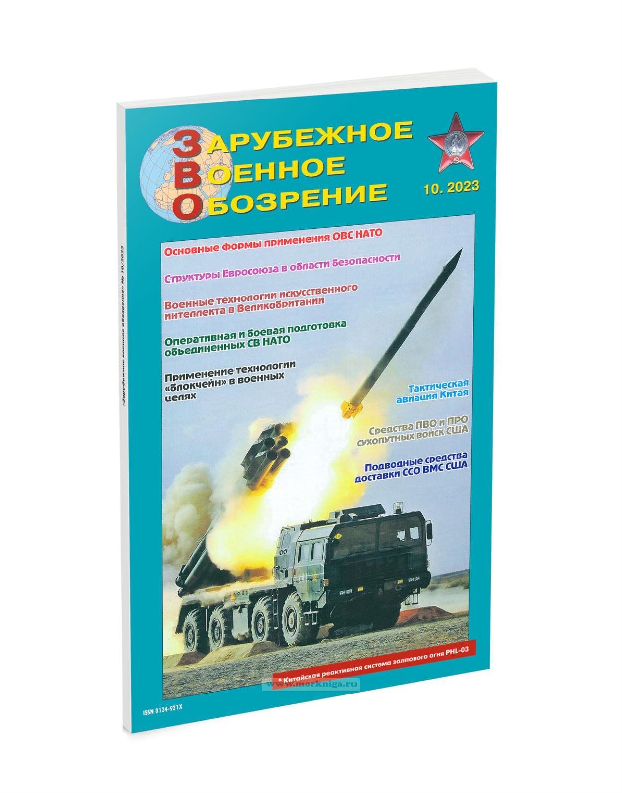 Зарубежное военное обозрение - ежемесячный информационно-аналитический иллюстрированный журнал Министерства обороны СССР и Российской Федерации. “Зарубежное военное обозрение” на различных этапах развития Вооруженных Сил было ведущим открытым военным изданием, освещающим широкий круг вопросов: строительство иностранных армий, военная политика, стратегия и тактика, создание и совершенствование вооружения и военной техники за рубежом и др. В последние годы на страницах журнала постоянно публикуются аналитические статьи, подготовленные ведущими специалистами на основе открытых зарубежных источников и освещающие широкий спектр военных, военно-политических, военно-технических теоретических и практических проблем, характеризующих современное состояние и перспективы развития армий иностранных государств.
