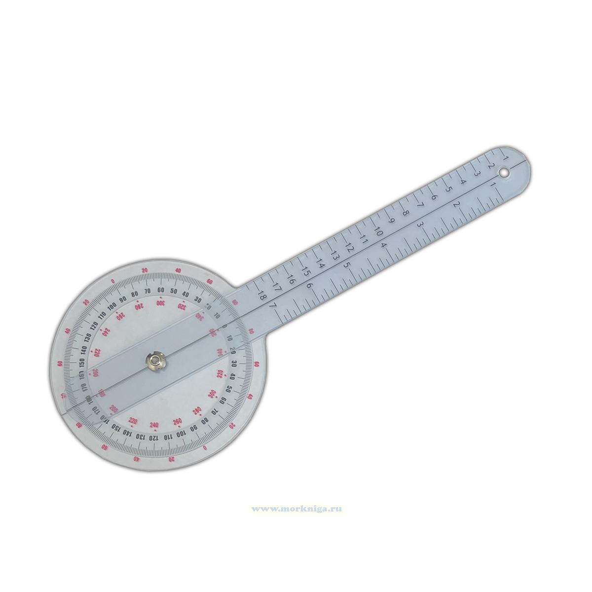 Протрактор морской измеряет полный диапазон 360 градусов с шагом в один градус.