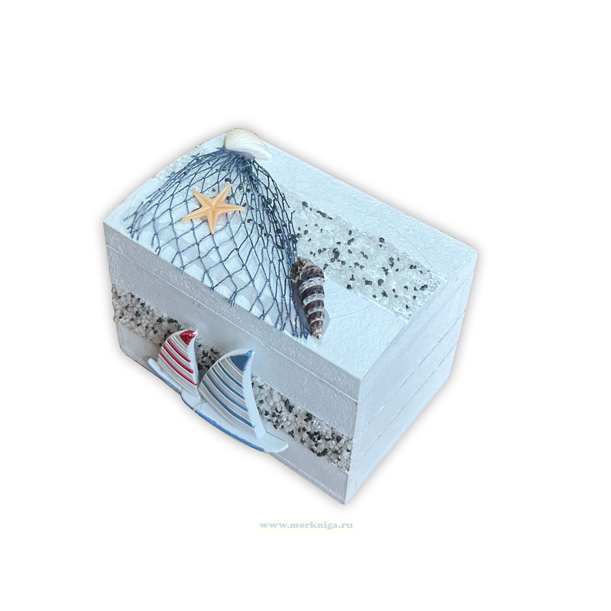 Шкатулка Море выполнена из дерева. Идеально вписывается в любой интерьер и придает ему уютную морскую изюминку.