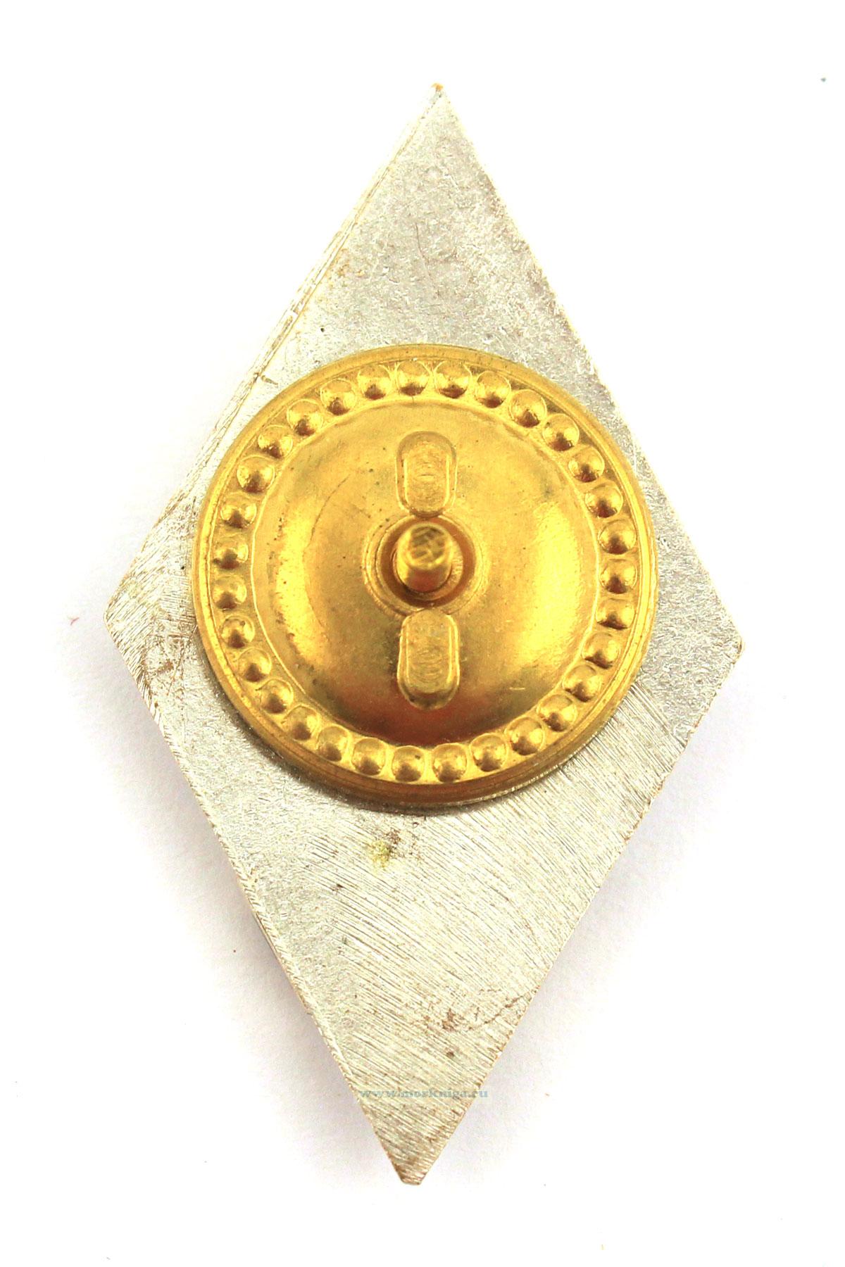 Знак выполнен в форме ромба, залитого белой эмалью. Окантован серебром. Центральное место занимает золотистый герб РФ, снизу табличка серебристого цвета с надписью: «Военно-инженерный университет».