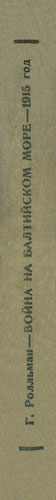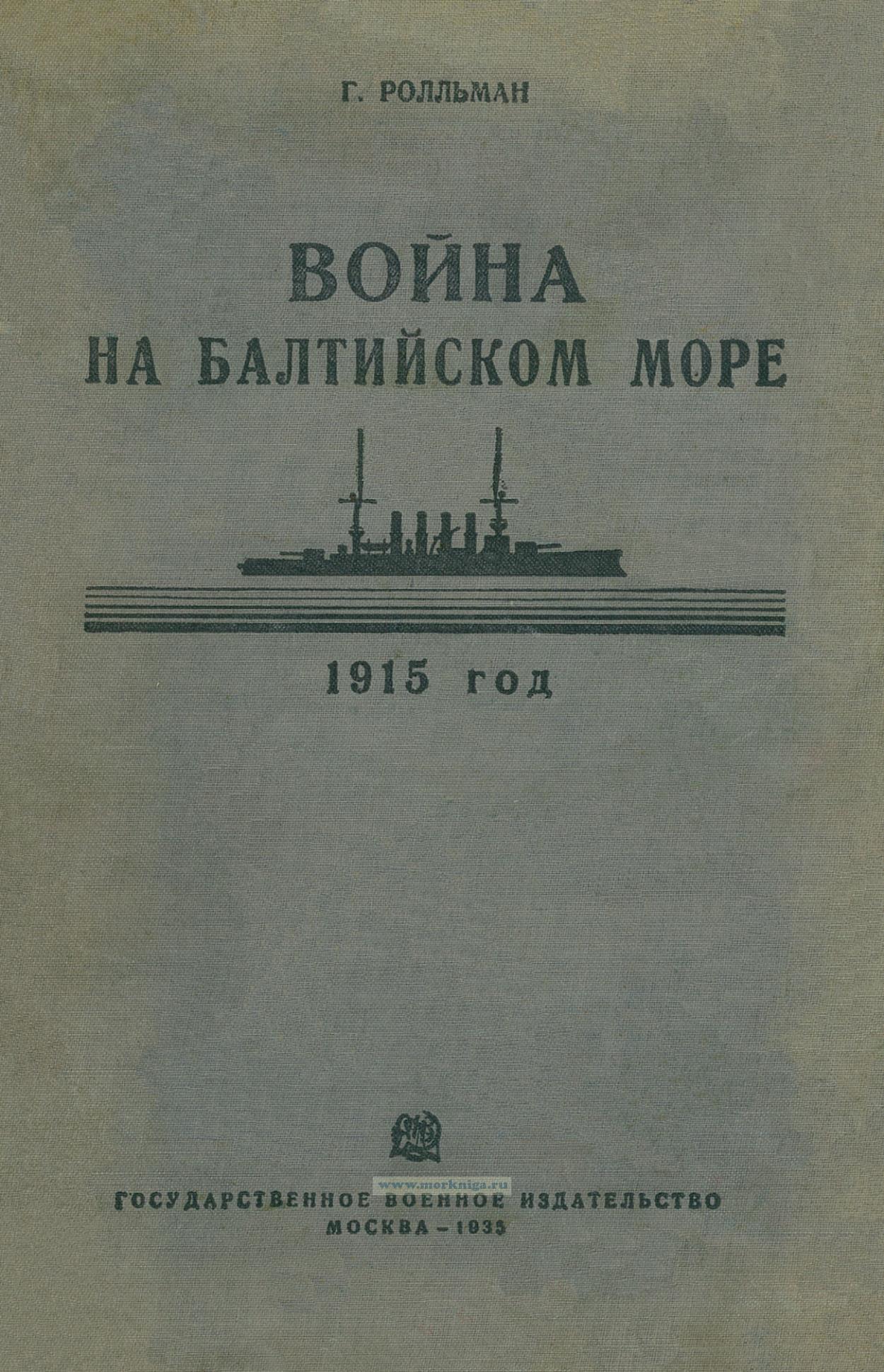 Германским военно-морским архивом в числе морских изданий военно-исторического характера после мировой войны выпущены в свет 2 тома из серии “Война на Балтийском море” (“Der Krieg in der Ostsee”). Первый том - Р. Фирле, - описание боевых действий в 1914 г., - был переведен на русский язык и издан в 1926 г. редакционно-издательским отделом морских сил (в Ленинграде). Второй том - Г. Ролльмана - представляет собой описание боевых действий в 1915 г. по данным германского архива. В труде содержится, наряду с описанием других событий, описание операций флота по поддержке левого фланга германской армии при ее продвижении в Курляндию, двух операций прорыва германского флота в Рижский залив с форсированием минного заграждения, минно-заградительных и тральных операций, операций подводных лодок. Заметное место уделено участию в операциях воздушных сил. Приводятся сведения о прорывах английских подводных лодок в Балтийское море и об их боевой деятельности (материал британского адмиралтейства), а также о мерах противолодочной борьбы, применявшихся с германской стороны. Изложение иллюстрируется рядом схематических карт, поясняющих ход отдельных операций и общую обстановку. Перевод снабжен примечаниями, составленными по советским архивным данным. Несмотря на изолированность балтийского театра, на описание военных действий только за 1915 г. и на характерную для военной литературы буржуазной Германии шовинистическую тенденциозность изложения, труд содержит ценный материал для изучения боевого опыта операций флота, в частности - совместных операций с армией, и явится полезным пособием для каждого командира морских сил РККА, для слушателей военных академий и всех, интересующихся событиями мировой войны на море.