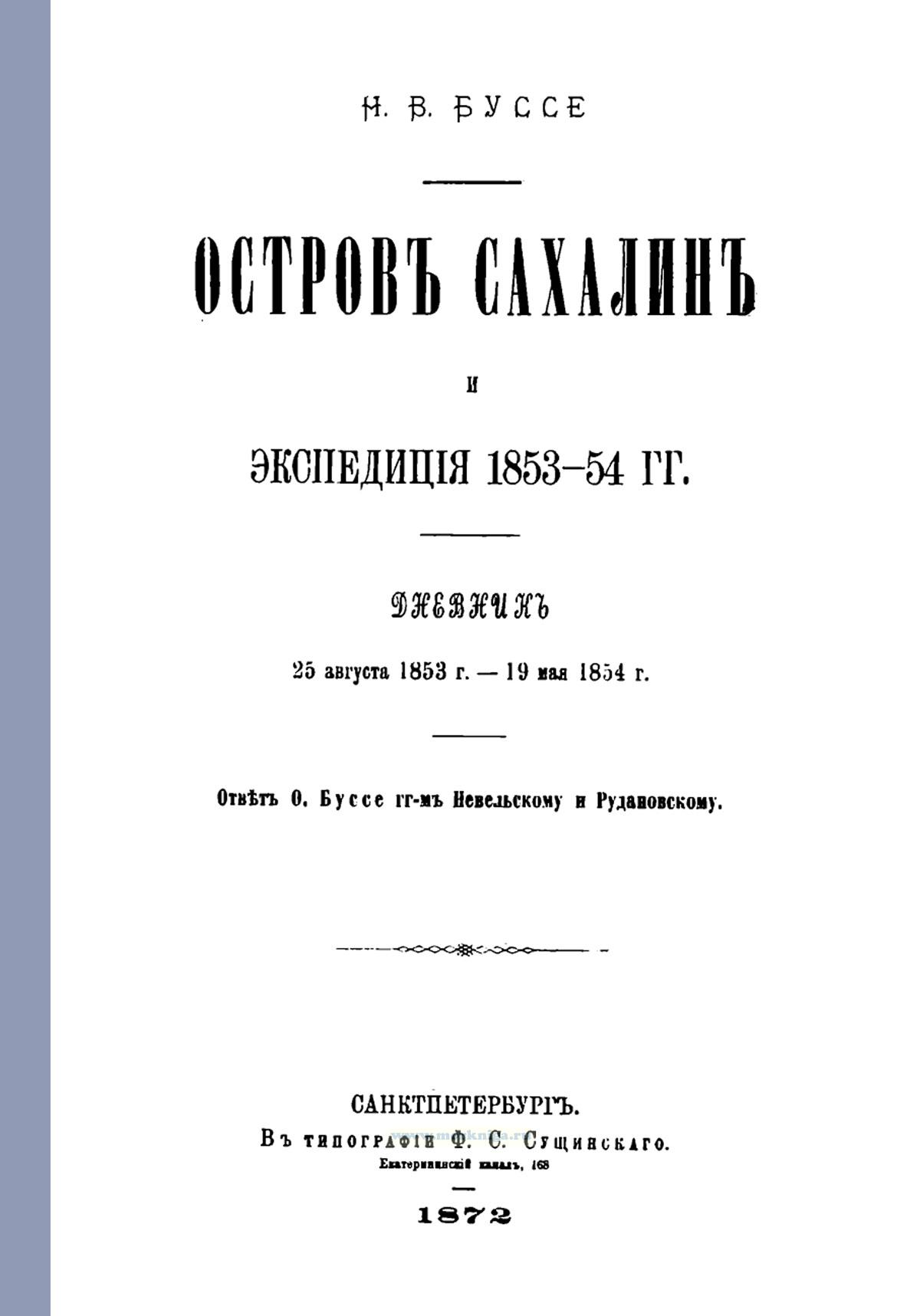 Книга Н.В. Буссе "Остров Сахалин и экспедиция 1953-54 гг." была основана на его дневнике и вышла в 1873 году.