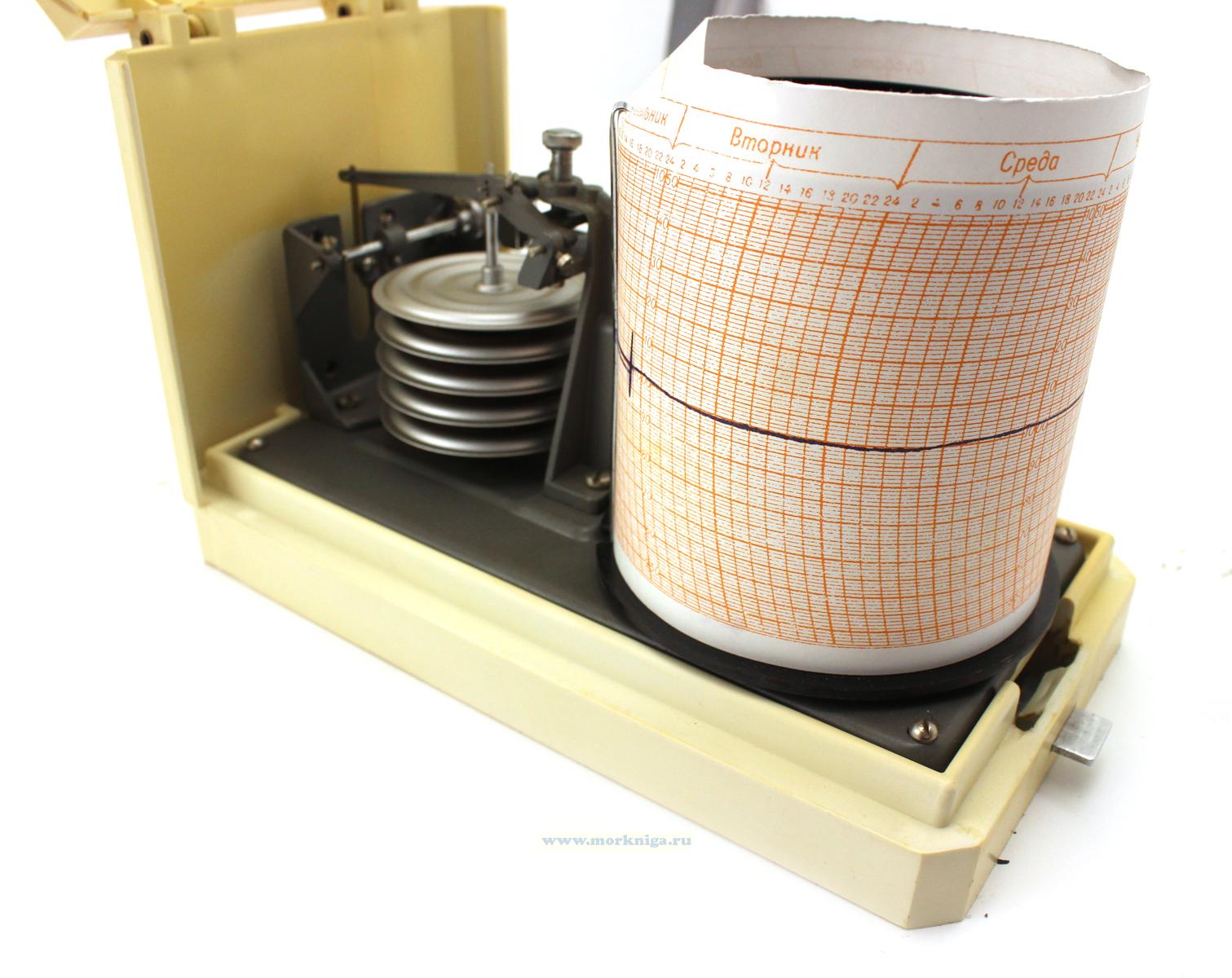 Он производит диаграмму с записью на бумажную ленту , названную барограммой, которая записывает атмосферноое давление в течение недели.