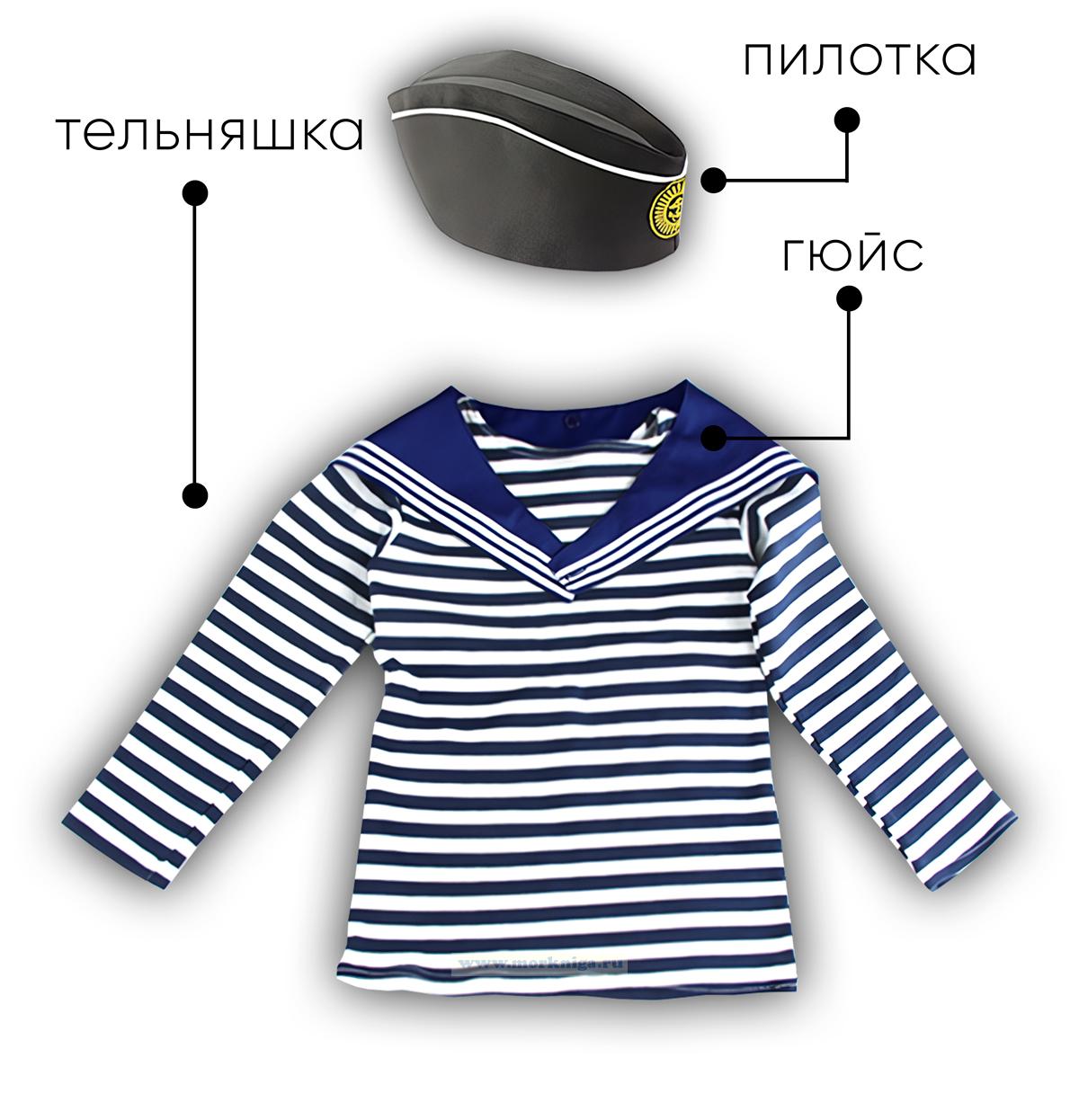 Детский набор матроса для утренника (тельняшка: 32 размер, пилотка: 54 размер (на рост 116-122, до 7 лет) и гюйс белый), 5 шт (4095 руб.)