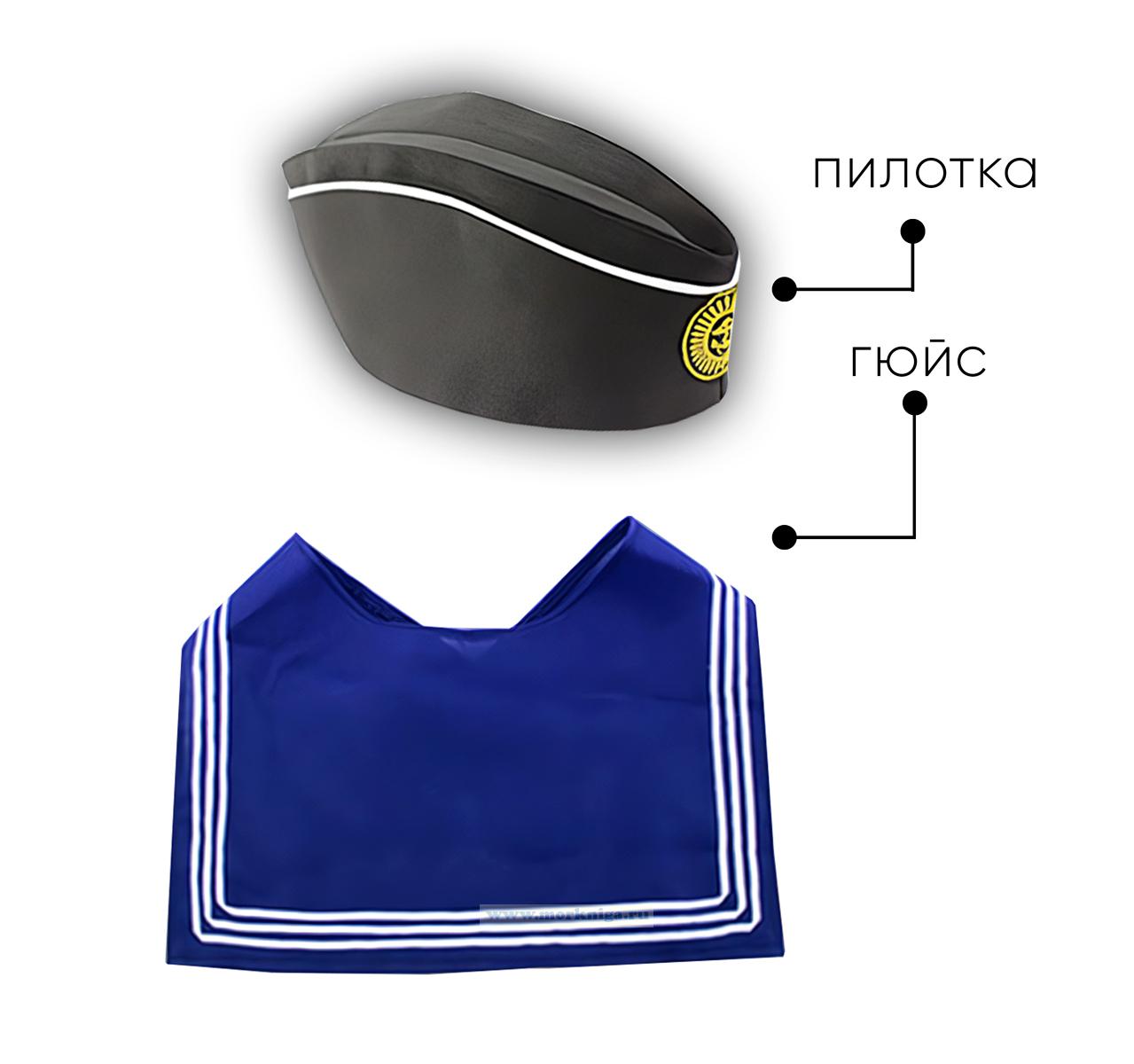 Детский набор матроса для утренника (пилотка: 56 размер (на рост 128-134, до 9 лет) и гюйс темно-синий), 10 шт (3770 руб.)
