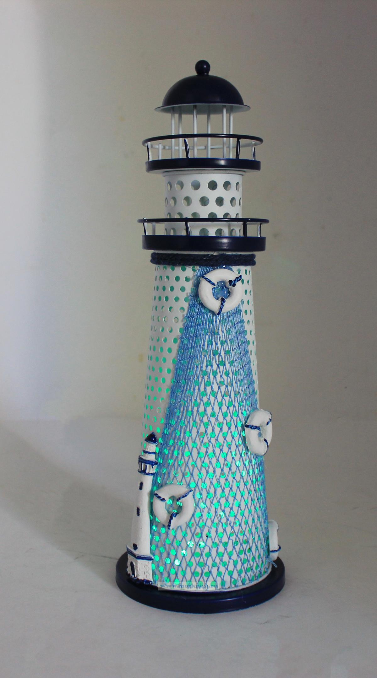 Маяк изготовлен из металла, окрашен в классические морские цвета - белый и синий. Этот аксессуар добавит нотку романтики в ваш интерьер. Его небольшие размеры позволяют разместить его на полке, столике или даже на рабочем столе, чтобы вдохновлять вас на новые приключения. Сувенир имеет два режима подсветки. Маяк упакован в картонную коробку с дизайном, и может послужить отличным подарком для любителей морской тематики.