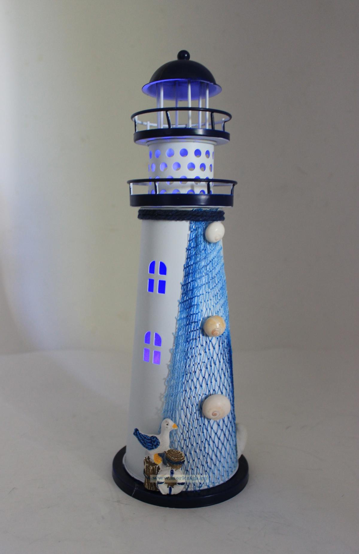 Маяк изготовлен из металла, окрашен в классические морские цвета - белый и синий. Этот аксессуар добавит нотку романтики в ваш интерьер. Его небольшие размеры позволяют разместить его на полке, столике или даже на рабочем столе, чтобы вдохновлять вас на новые приключения. Сувенир имеет два режима подсветки. Маяк упакован в картонную коробку с дизайном, и может послужить отличным подарком для любителей морской тематики.