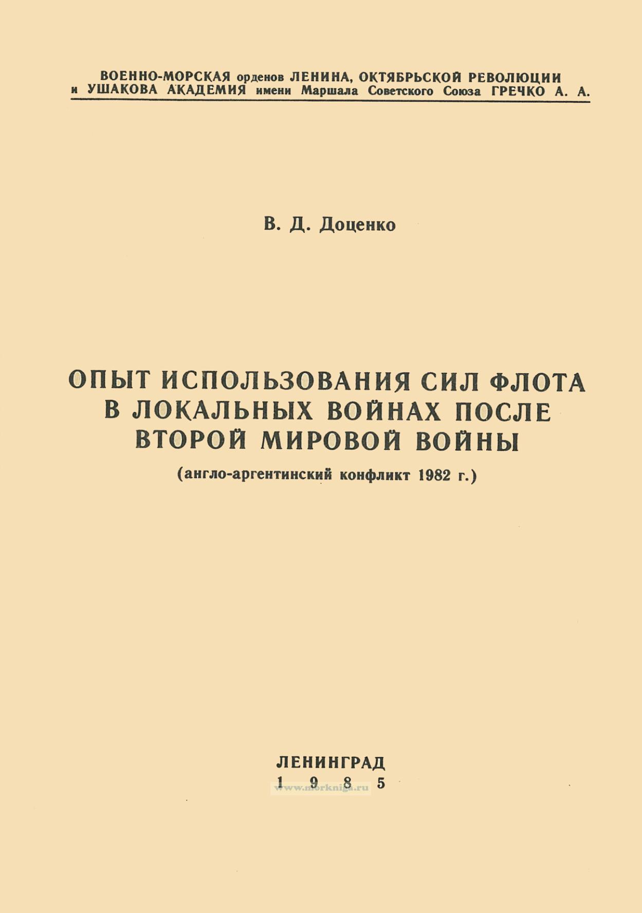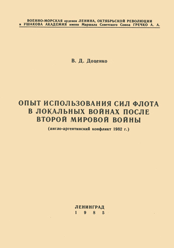 Развитие военно-морского искусства невозможно без учета опыта прошлого: “Нельзя научиться решать свои задачи новыми приемами сегодня, если нам вчерашний опыт не открыл глаза на неправильность старых приемов” - отмечал В. И. Ленин. Главнокомандующий ВМФ СССР Адмирал Флота Советского Союза С. Г. Горшков постоянно указывает на необходимость изучения опыта локальных войн и военных конфликтов, который “предостерегает от ошибок узкого практицизма, прожектерства и субъективизма, позволяет делать правильные выводы из анализа собственного военного опыта и военной практики флотов империалистических государств, что имеет исключительно важное значение для укрепления обороноспособности страны и ее морского могущества” Исключением не является и англо-аргентинский военный конфликт , характеризующийся широким применением военно-морских сил, оснащенных новейшими образцами боевой техники и вооружения.