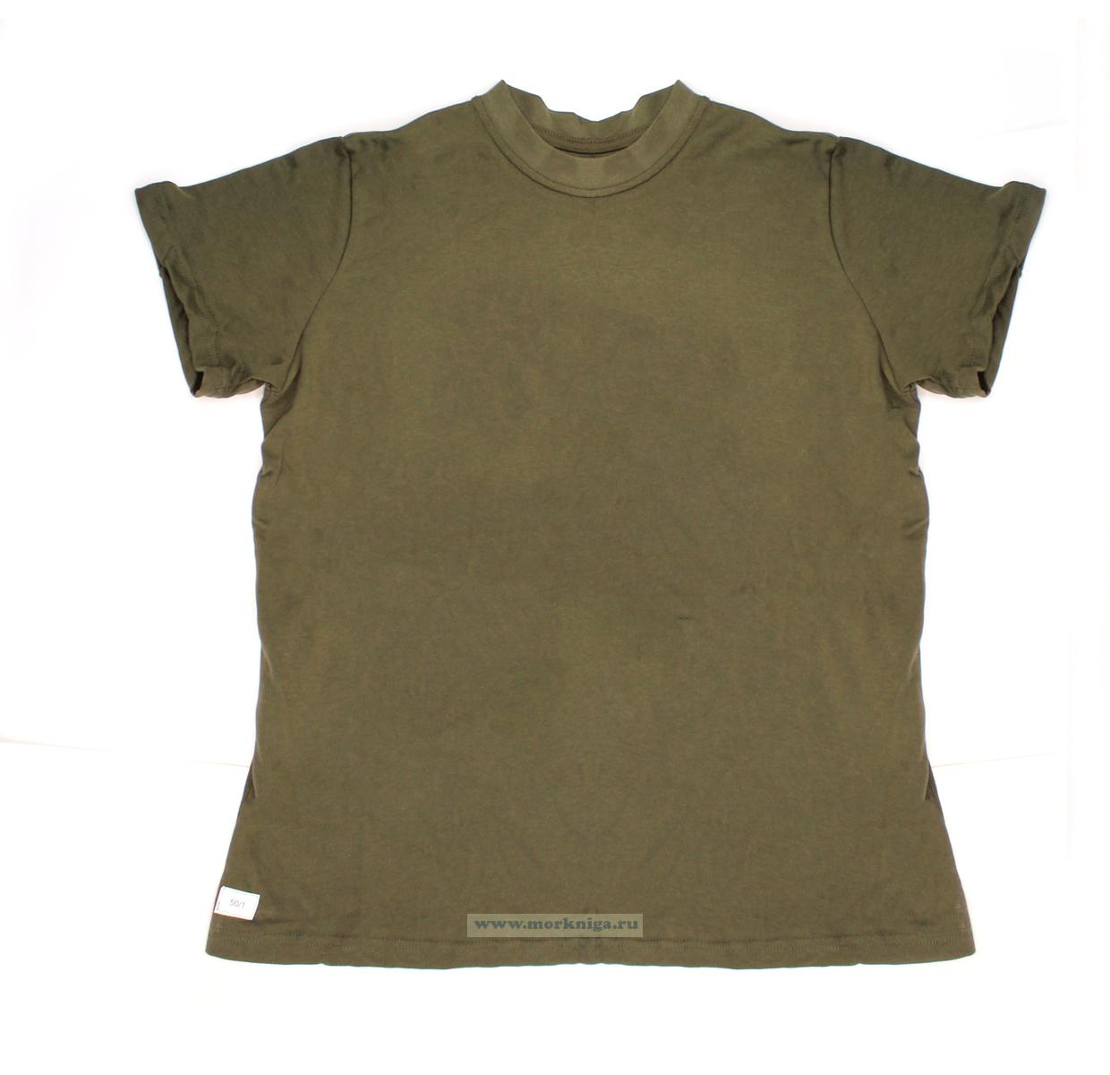 Футболка с коротким рукавом и круглым вырезом, без боковых швов, для летного и инженерно-технического состава, военнослужащих Минобороны. Изготовлена из натурального хлопкового трикотажного полотна.