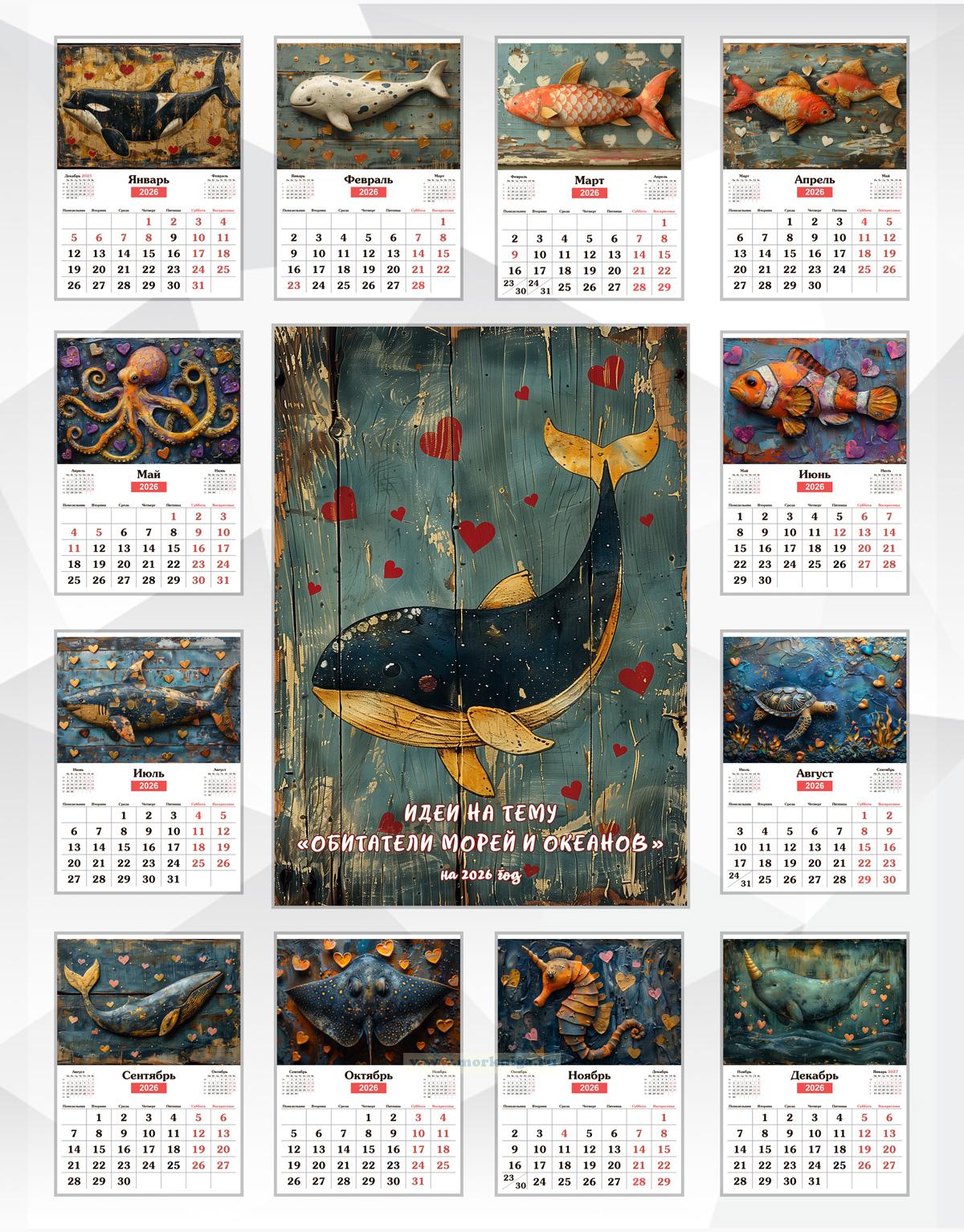 Календарь содержит изображения нарисованных жителей моря, сгенерированные с помощью нейросети. Календарь будет отличным подарком для ваших родных, друзей, знакомых, коллег или даже для себя.
