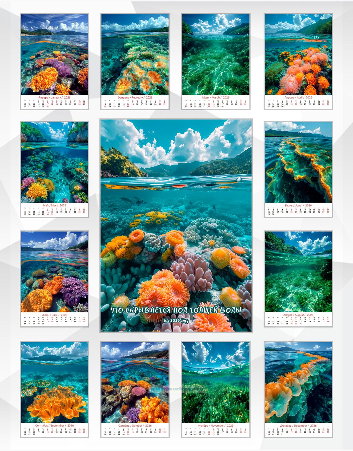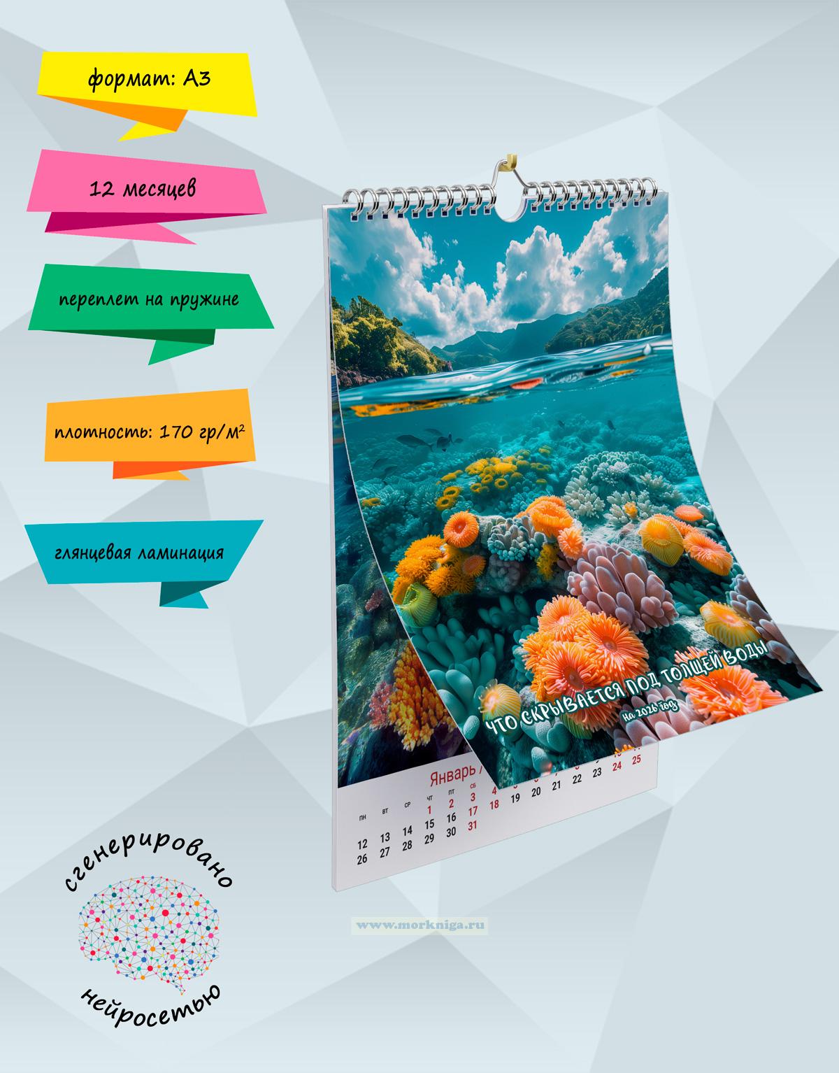 Календарь содержит изображения изумительной морской природы, сгенерированные с помощью нейросети, кристально чистая вода дает возможность рассмотреть удивительные растения. Календарь будет отличным подарком для ваших родных, друзей, знакомых, коллег или даже для себя.
