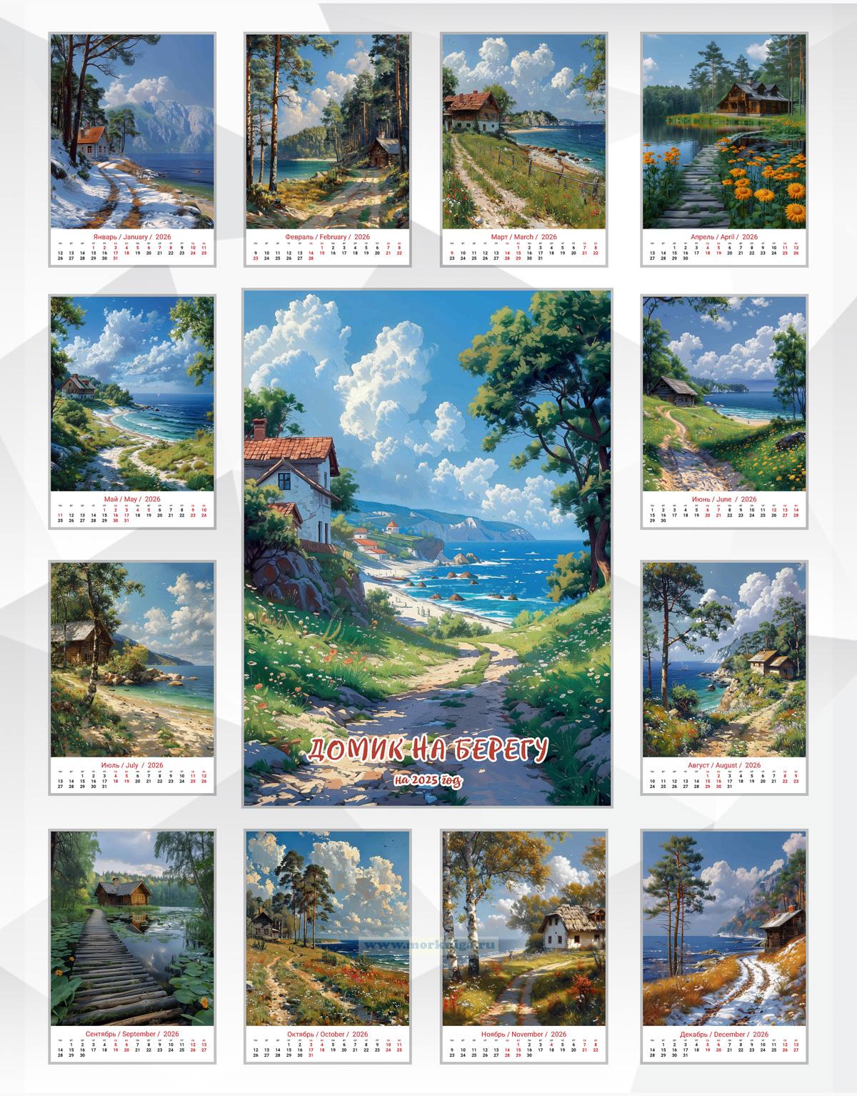 Календарь содержит изображения домика в атмосферной обстановке в разное время года, сгенерированные с помощью нейросети. Календарь будет отличным подарком для ваших родных, друзей, знакомых, коллег или даже для себя.