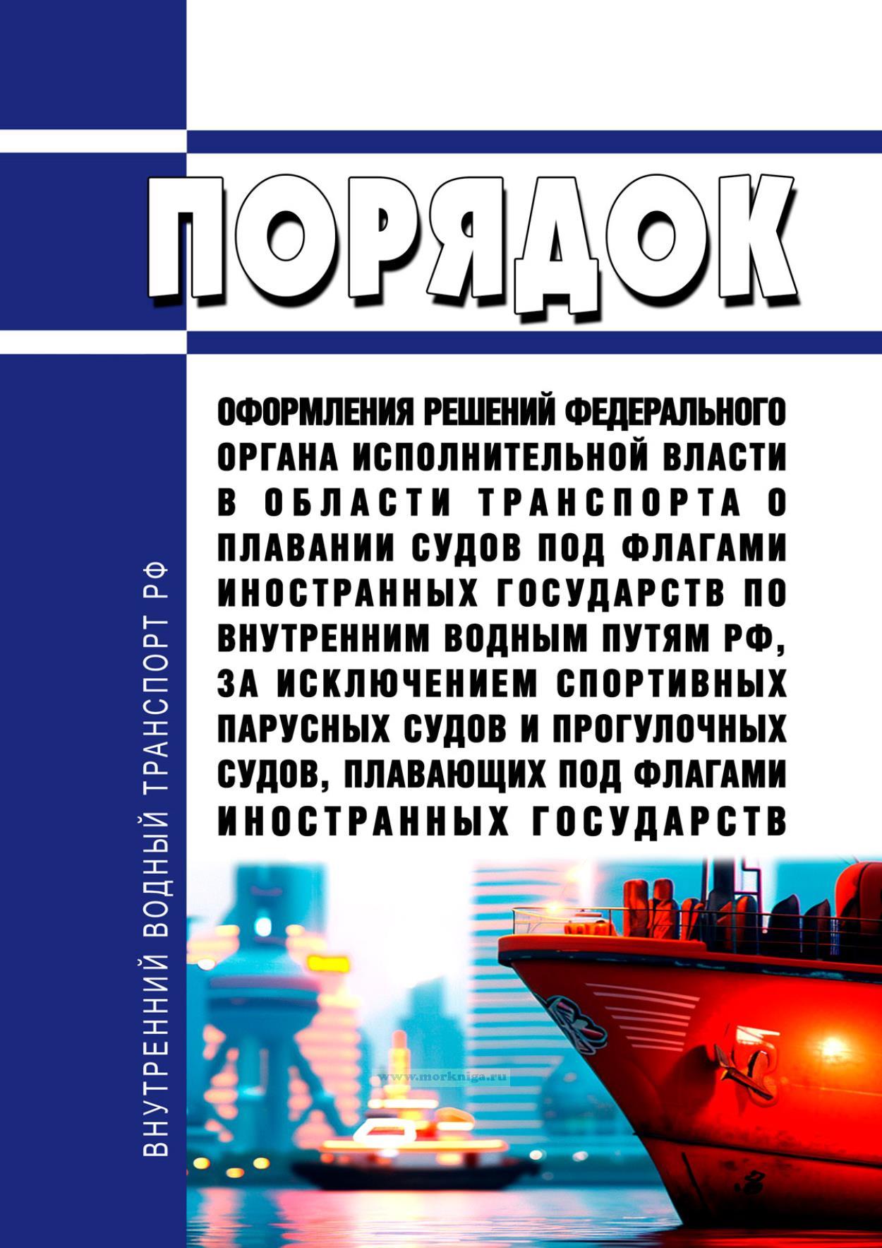 Решение федерального органа исполнительной власти в области транспорта о плавании судна под флагом иностранного государства по внутренним водным путям Российской Федерации, за исключением спортивных парусных судов и прогулочных судов, плавающих под флагами иностранных государств, оформляется на основании обращения компетентного органа иностранного государства в области транспорта, направленного в адрес Министерства транспорта Российской Федерации не позднее чем за 60 рабочих дней до даты захода судна во внутренние водные пути Российской Федерации.