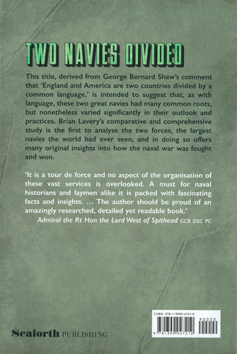 The title of this book is derived from a common misquotation of George Bernard Shaw’s supposed comment that ‘England and America are two countries divided by a common language.’ It is not meant to imply that the British and American navies were seriously at odds with one another (though occasionally that might have seemed to be the case), but to suggest, as in the case of language, that common roots and usages might vary significantly and sometimes seriously in detail.