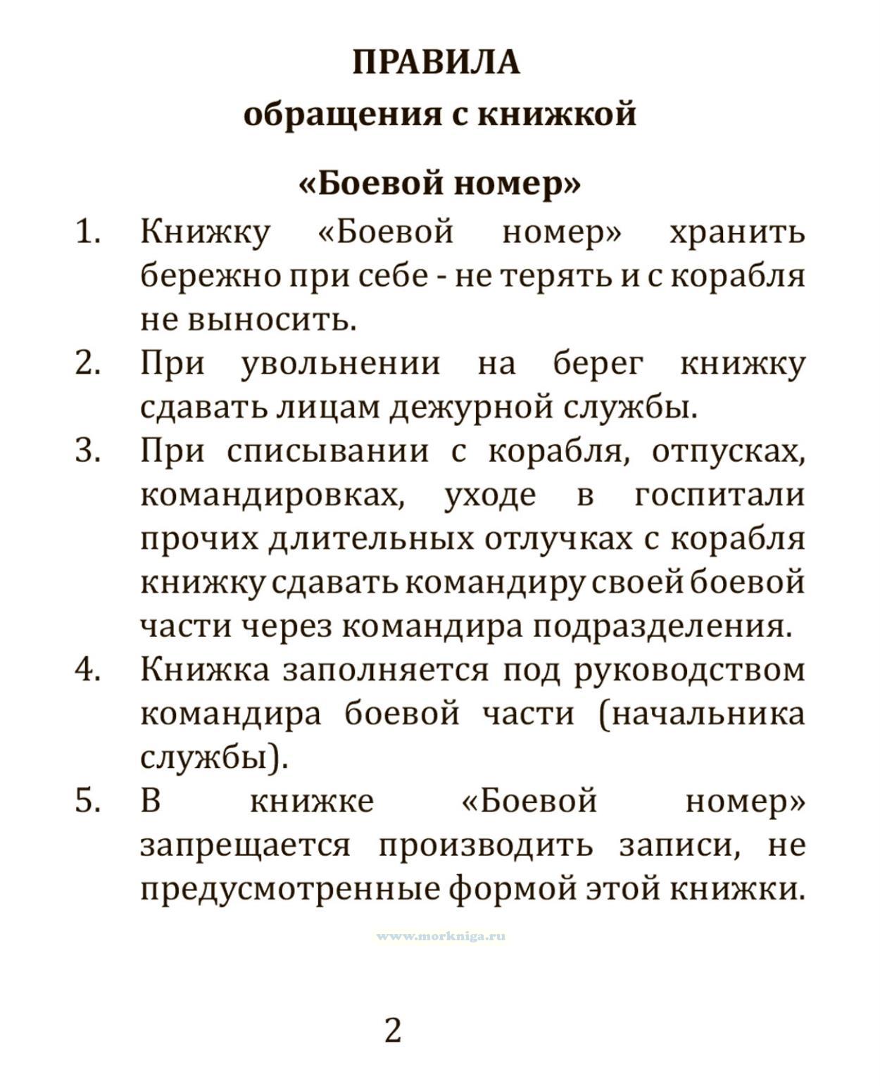 Мичманам, старшинам и матросам корабельного состава выдается книжка "Боевой номер".