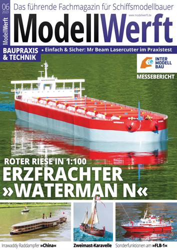 Mit einer Gesamtlange von uber drei Metern ist der Erzfrachter Waterman N im Mastab 1:100 auf keinem Gewasser zu ubersehen. Ab Seite 10 berichtet Wolf-Christian Ner-ger ausfuhrlich uber den Eigenbau seines Roten Riesen