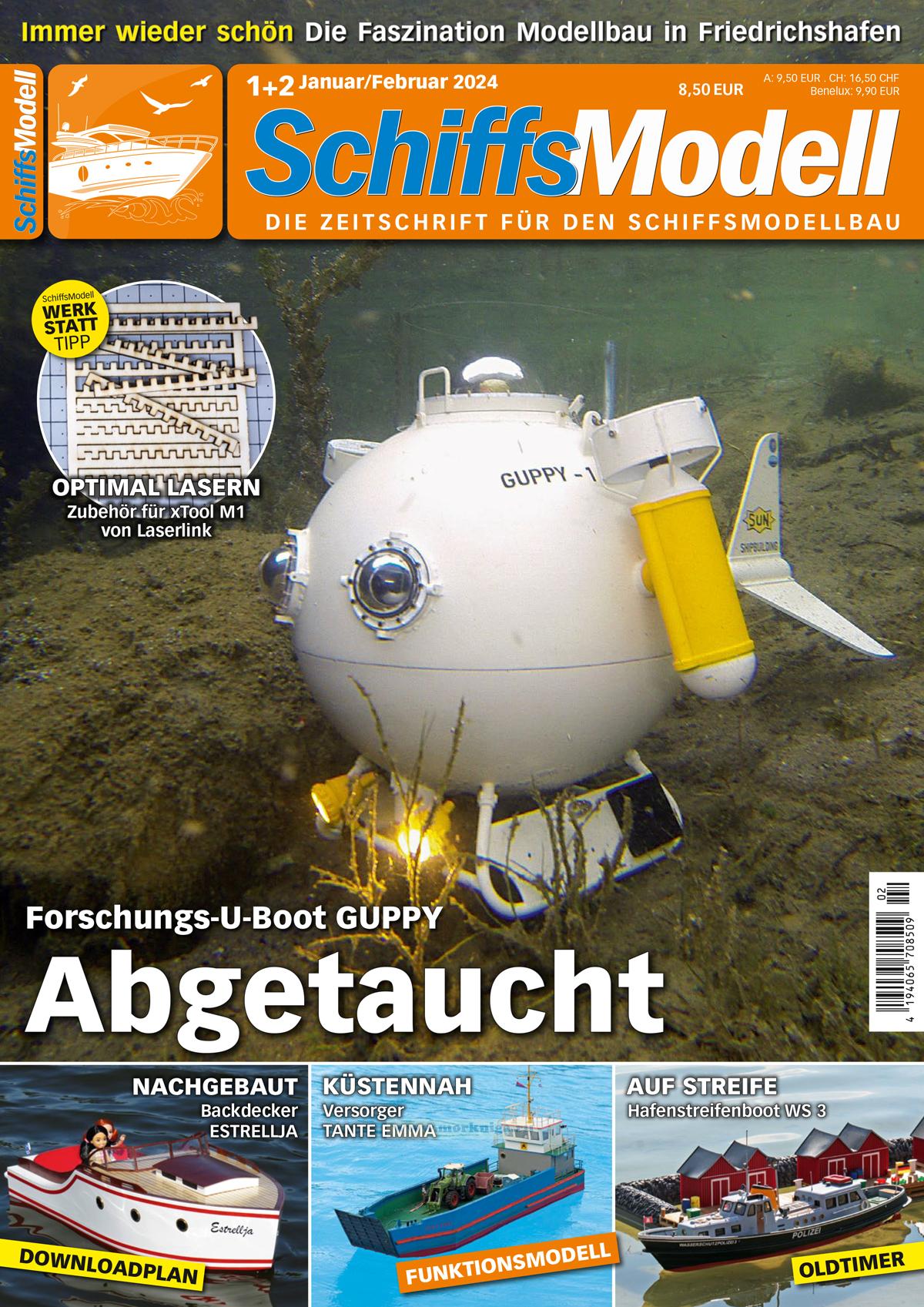 Die bekannte Fachzeitschrift SchiffsModell befasst sich seit inzwischen 30 Jahren mit allen Bereichen des funktionalen Schiffsmodellbaus. Neben den einzelnen Sparten der Schiffstypen wie z. B. Motorschiffe, Segelschiffe, Rennboote, Dampfschiffe usw. zahlen auch die erganzenden Themen wie Fernsteuerungs- und Antriebstechnik, Akkus und Ladegerate, Bearbeitungs- und Materialkunde usw. zum Inhalt. Regelmaige Rubriken uber Neuheiten am Markt, Surf-Tipps zu interessanten Homeseiten und Nachrichten aus dem Vereinsleben informieren laufend uber die aktuellen Themen aus der Szene. Aussagekraftige Testberichte uber die unterschiedlichsten Produkte der Industrie sowie Reportagen uber Veranstaltungen und Wettbewerbe runden den Inhalt ab.