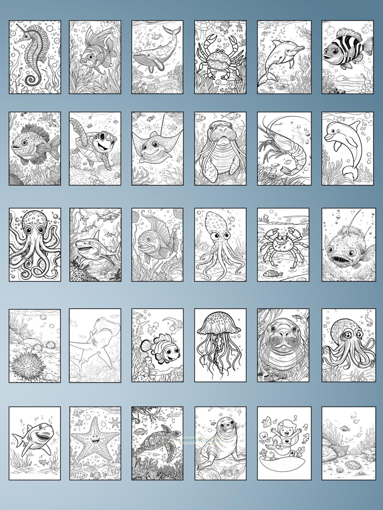 Раскраска содержит 30 замечательных изображений морских жителей, сгенерированные с помощью нейросети. Листы из плотной бумаги позволяют рисовать красками, карандашами, фломастерами и пастельными мелками. Ребенок сможет проявить свою фантазию, развить аккуратность, внимание и усидчивость.