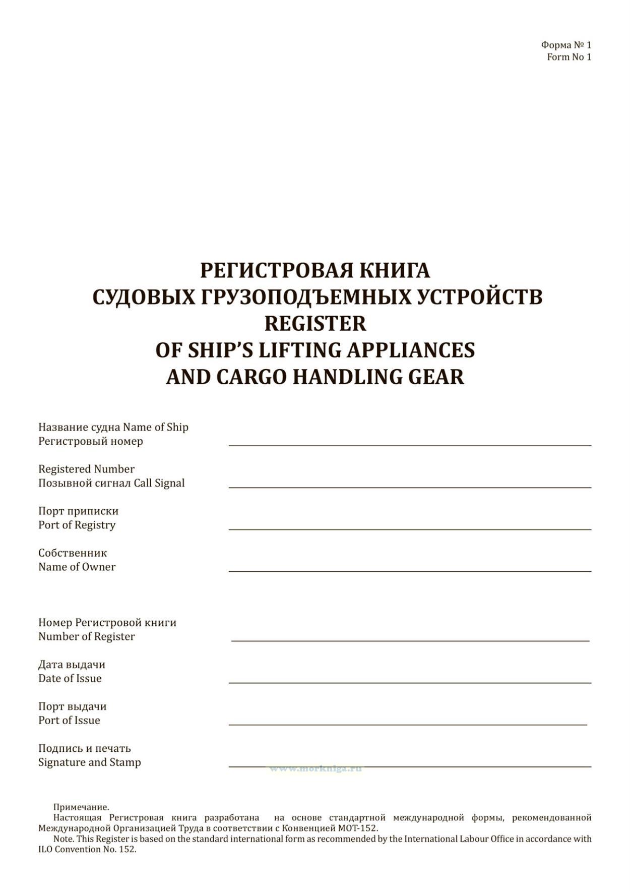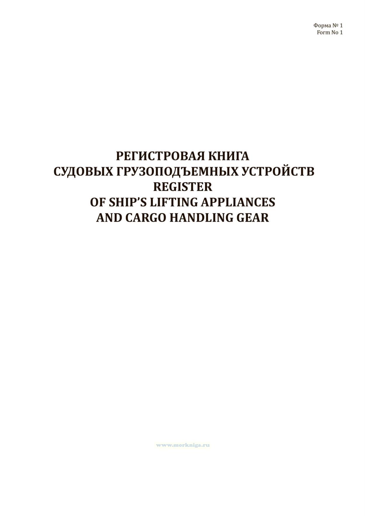 Регистровая книга судовых грузоподъёмных устройств состоит из разделов /Register of Ship’s Lifting Appliances and Cargo Handling Gear consists of sections: