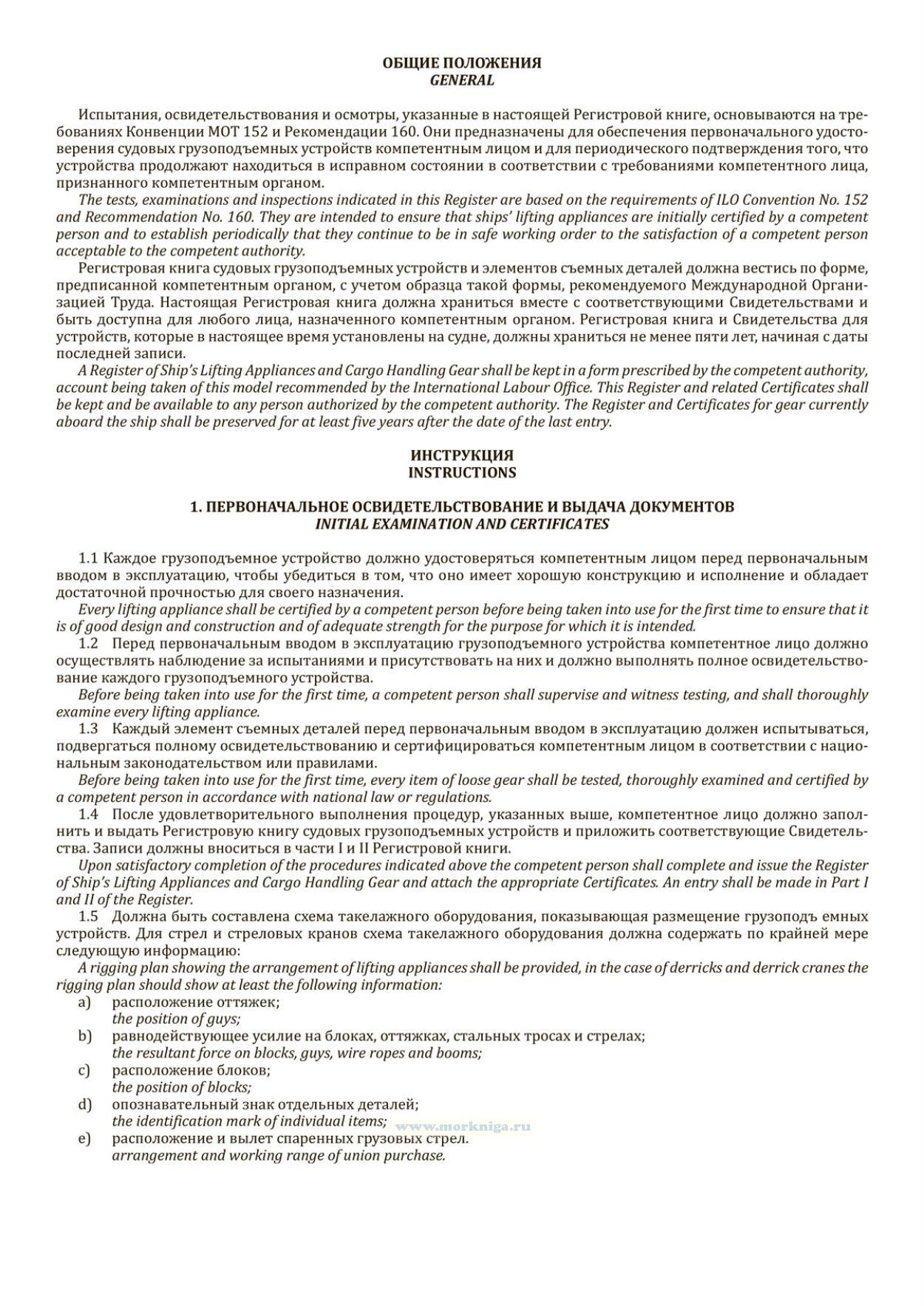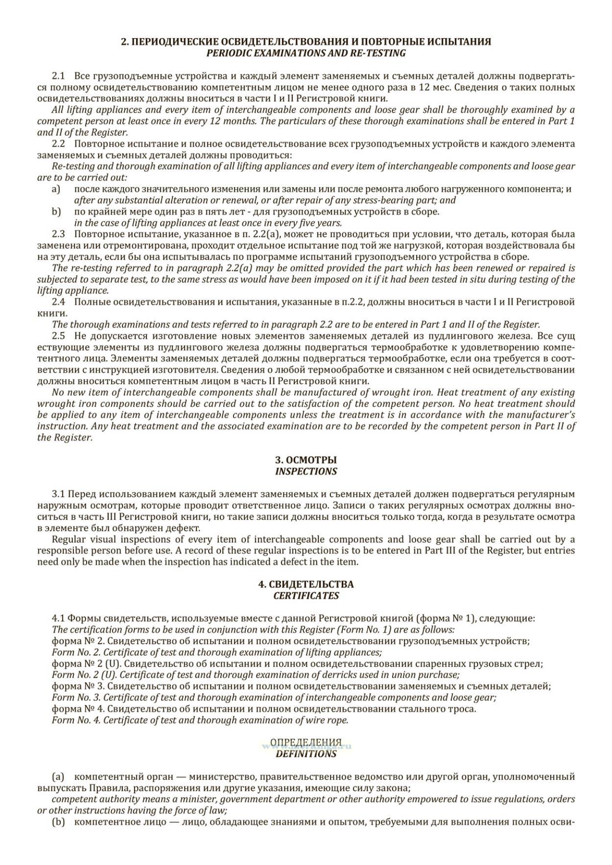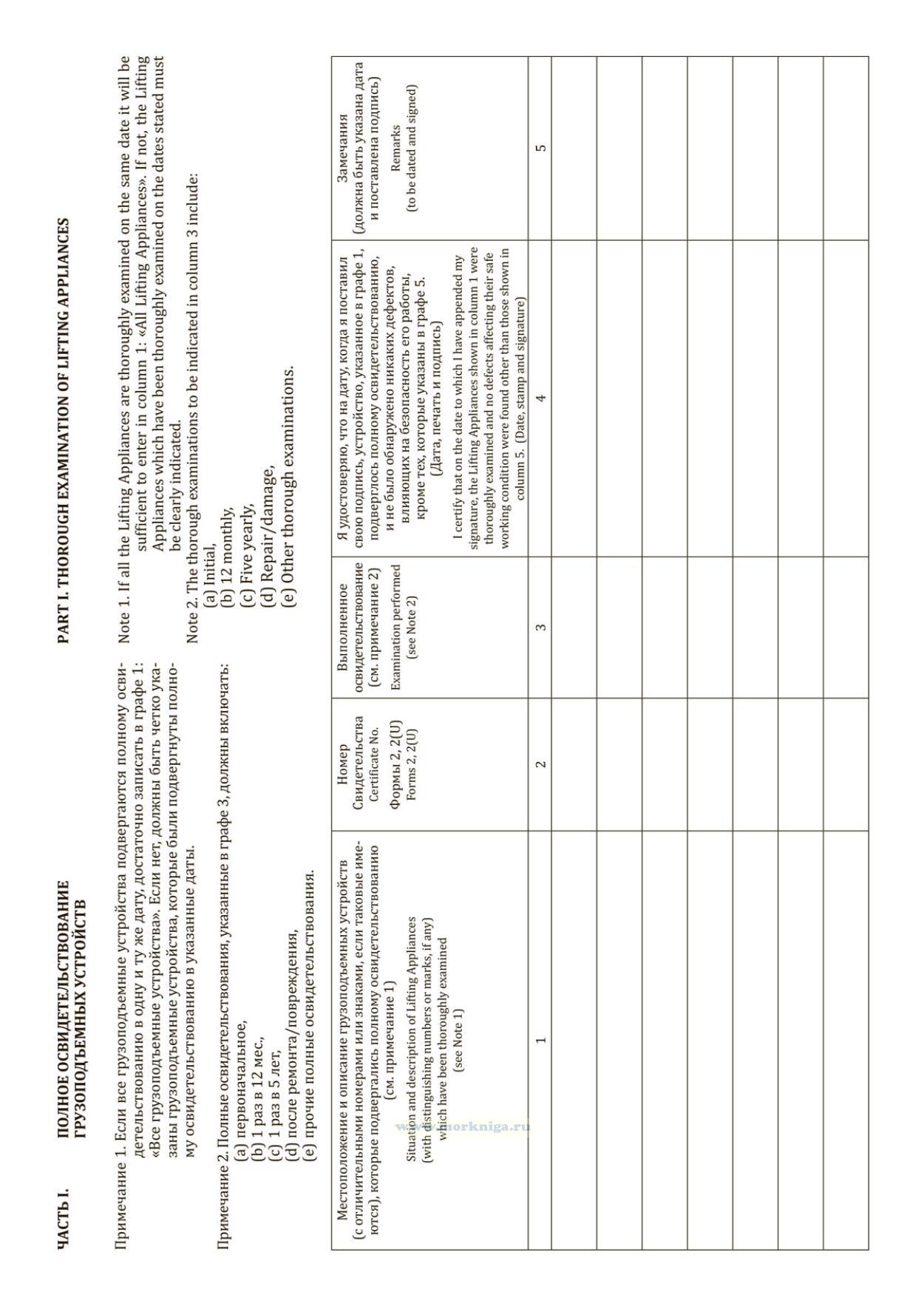 Часть I. Полное освидетельствование грузоподьемных устройств / Part I. Thorough examination of lifting appliances